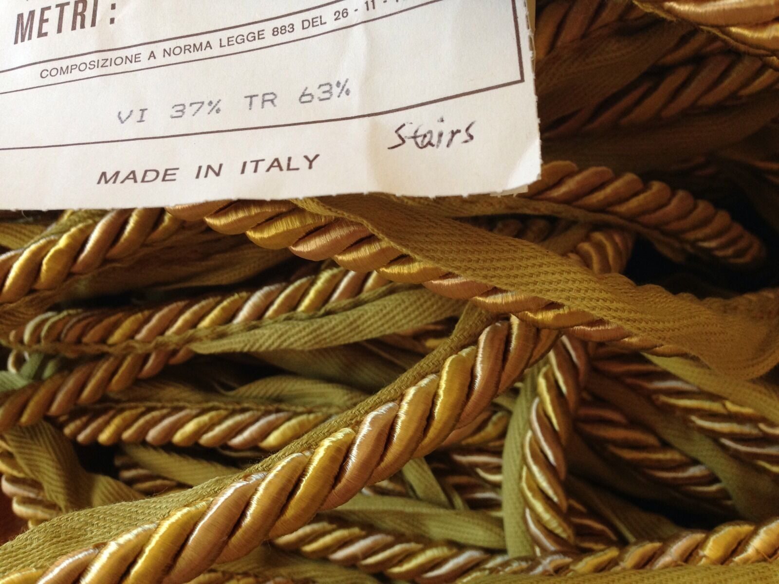 High quality trim from Italy. We lost the information of the brand but it is from an Italian factory.