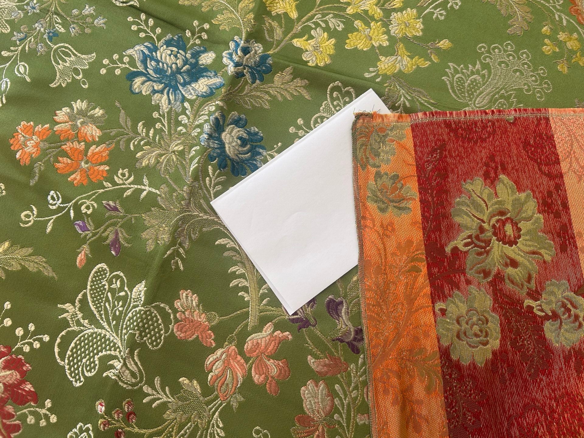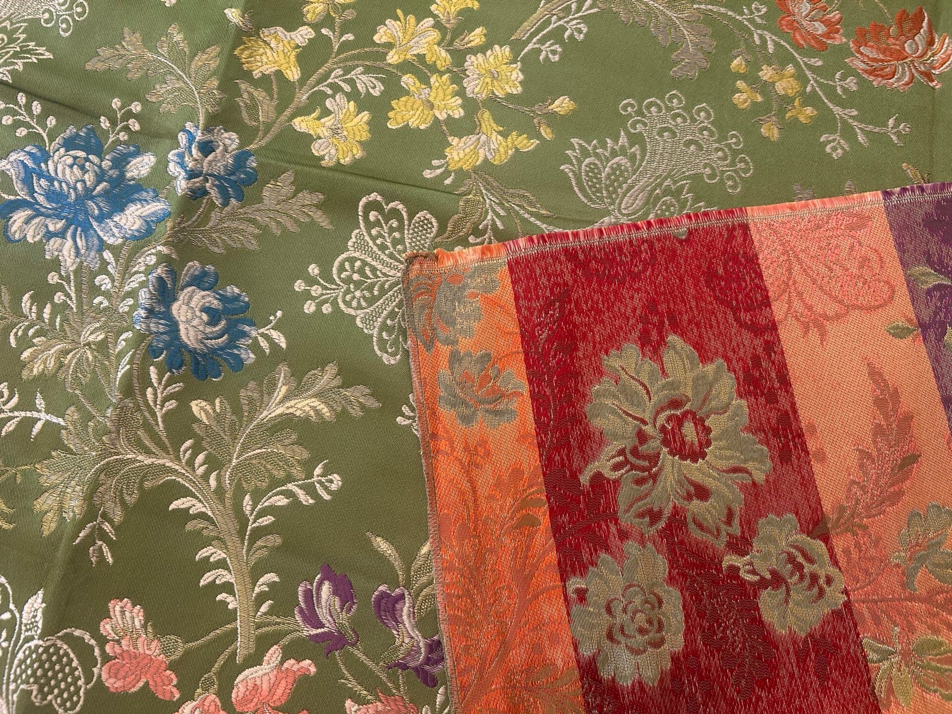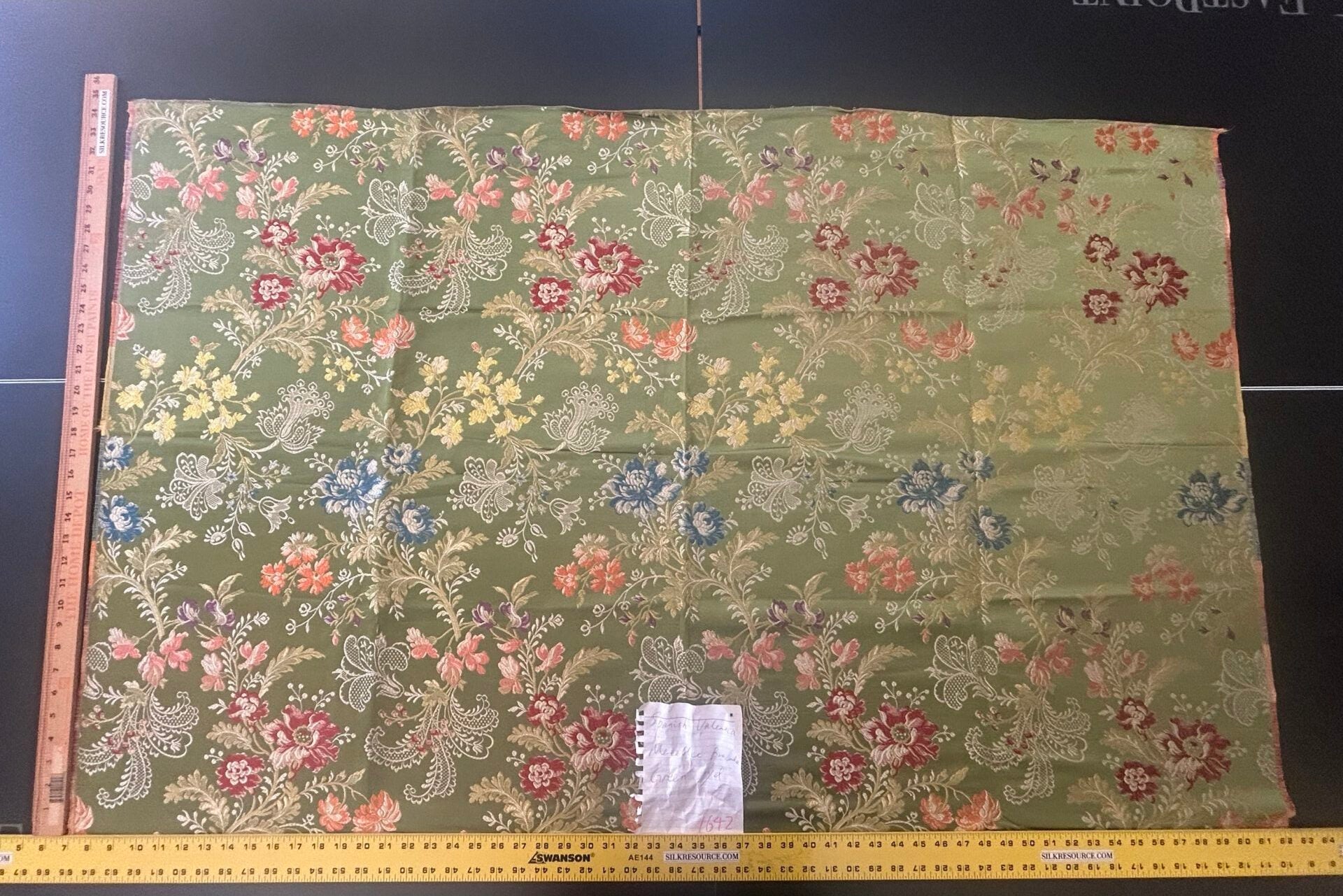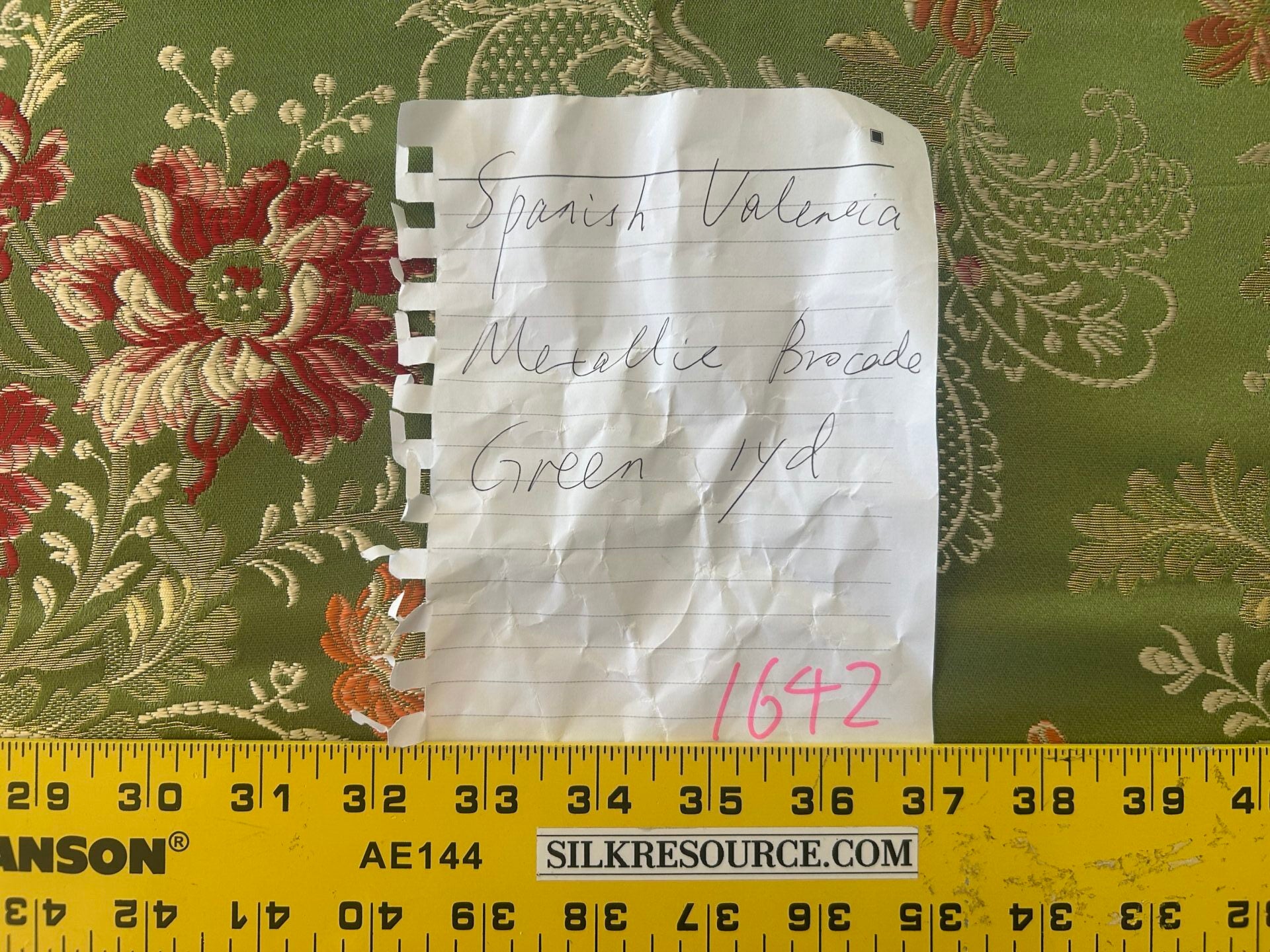 High End Renaissance Lampas Spanish Valencia Metallic Brocade Garland red green gold on Green