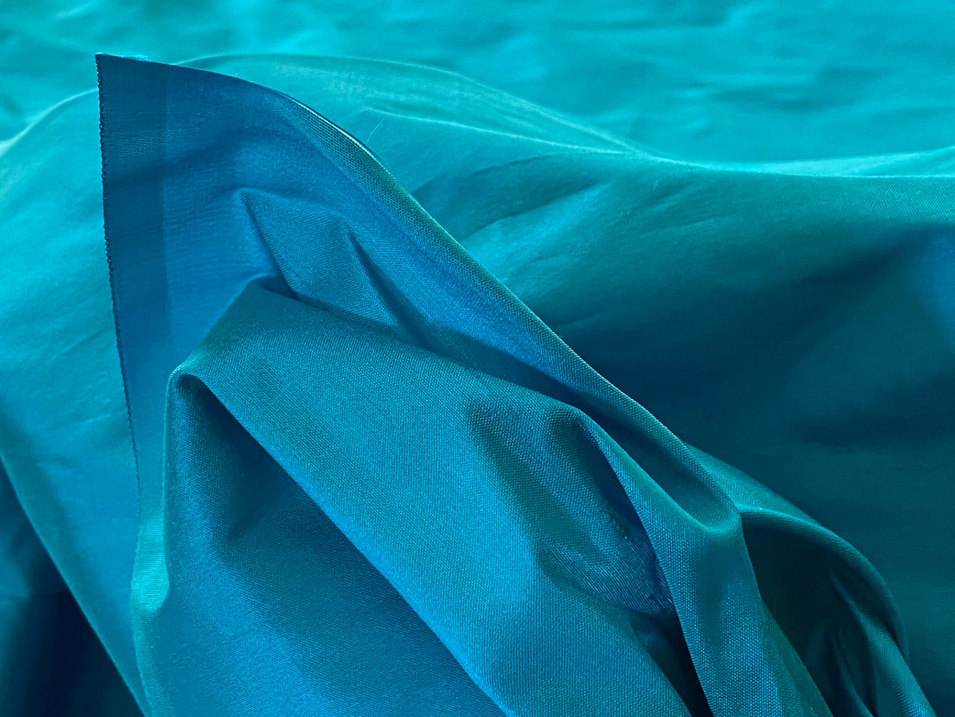 High end Shangri-la 100% Silk Dupionni Peacock Blue Radiance