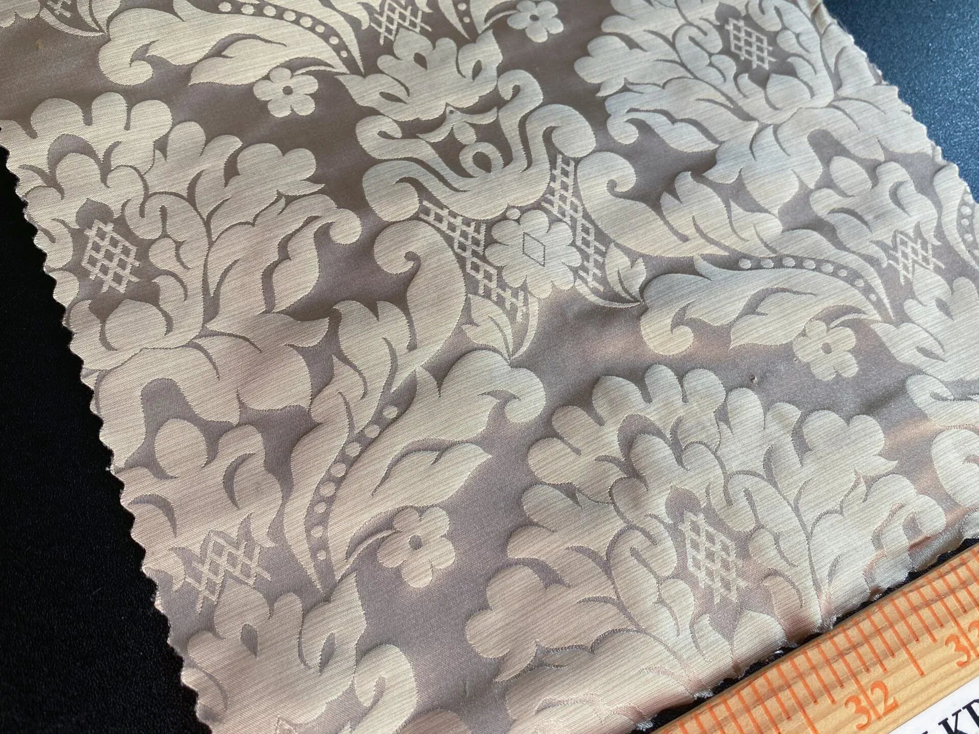 High End Veranda Renaissance Damask 100% Silk Taupe Beige