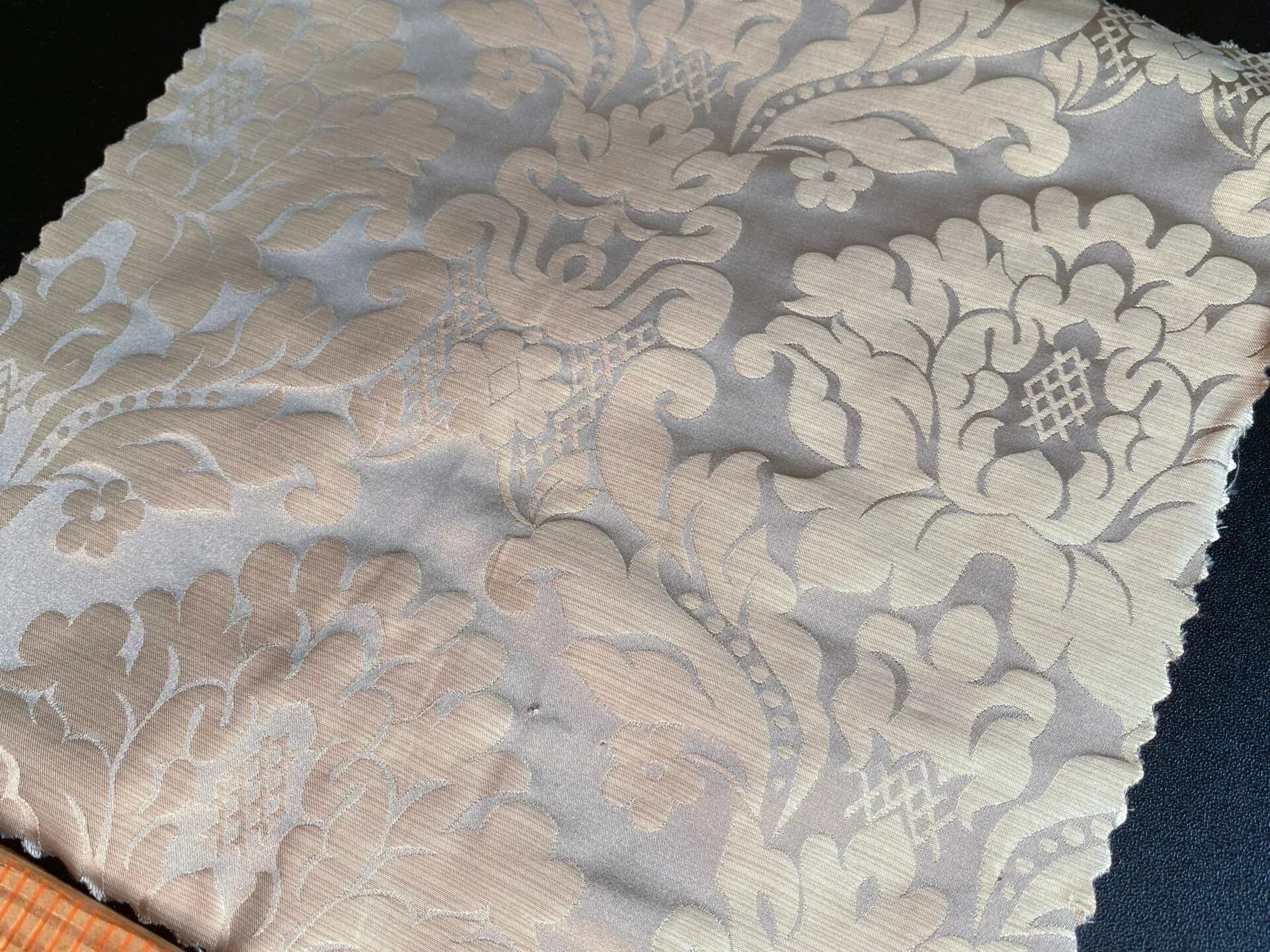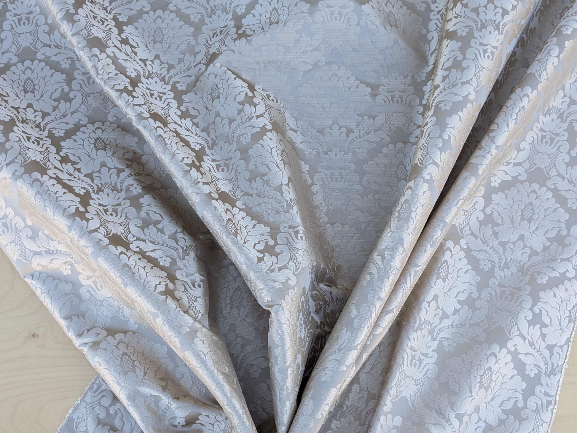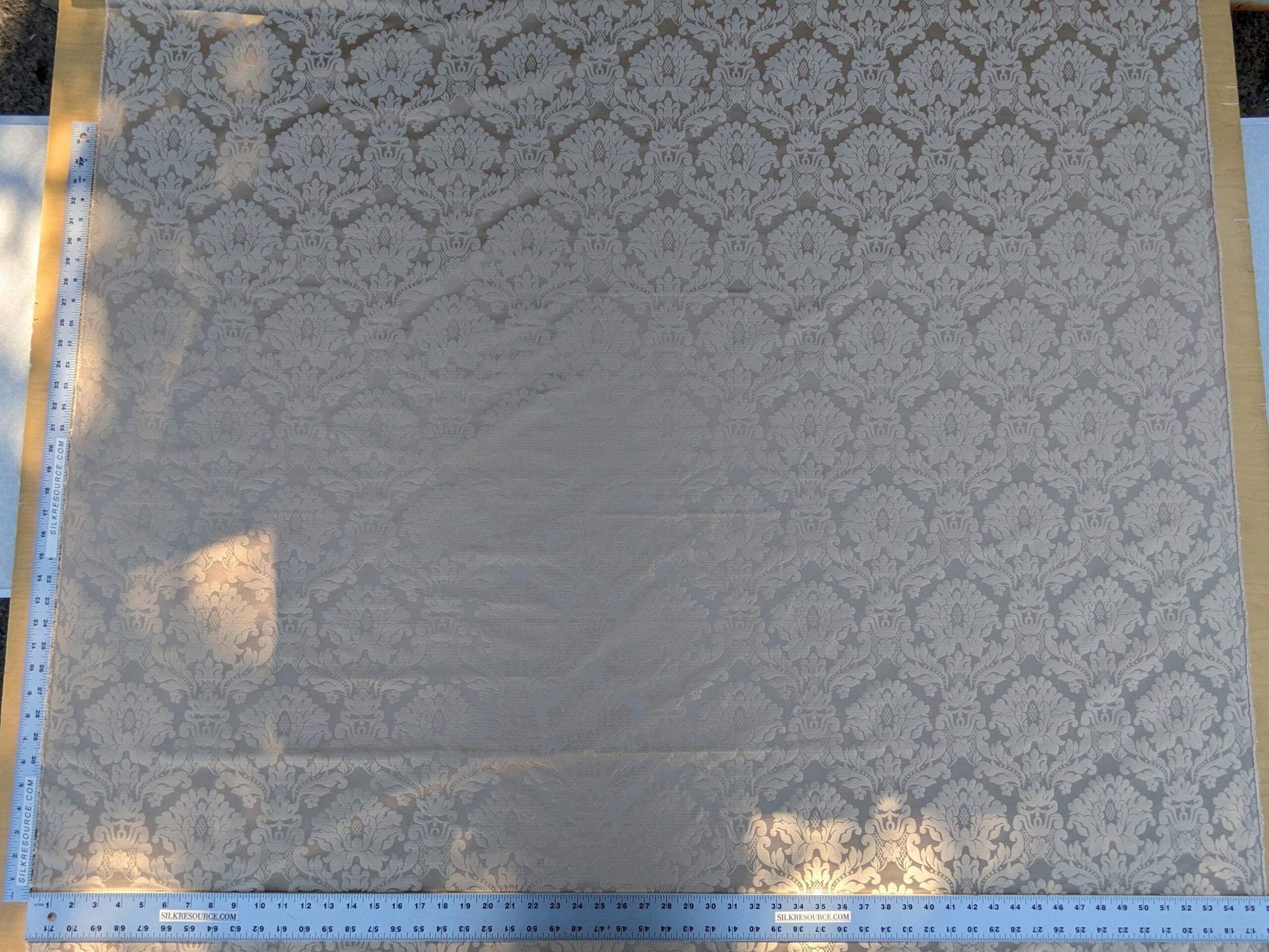 100% silk damask. Reversible. There is a glow in the high quality silk fiber...