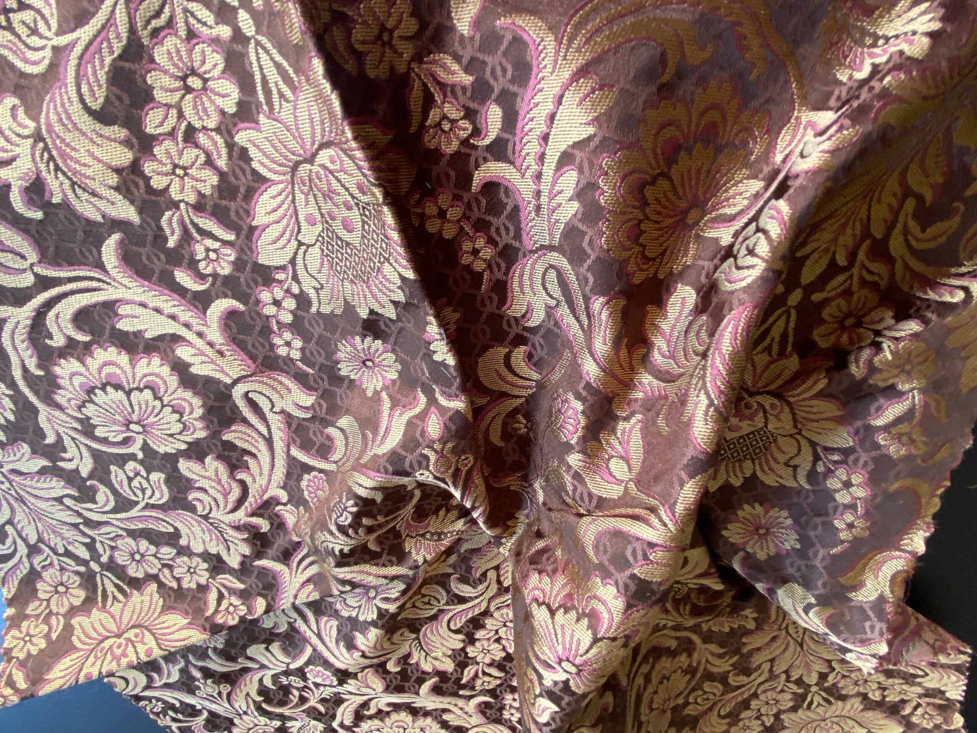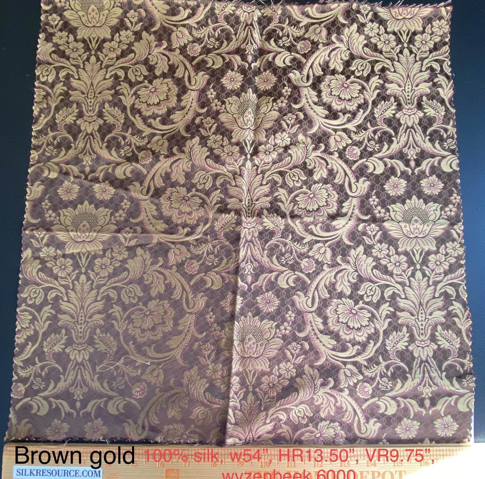 In Name of Rose Medallion Acanthus Renaissance Silk Damask Jacquard Brown & Gold MSRP USD 225Y
