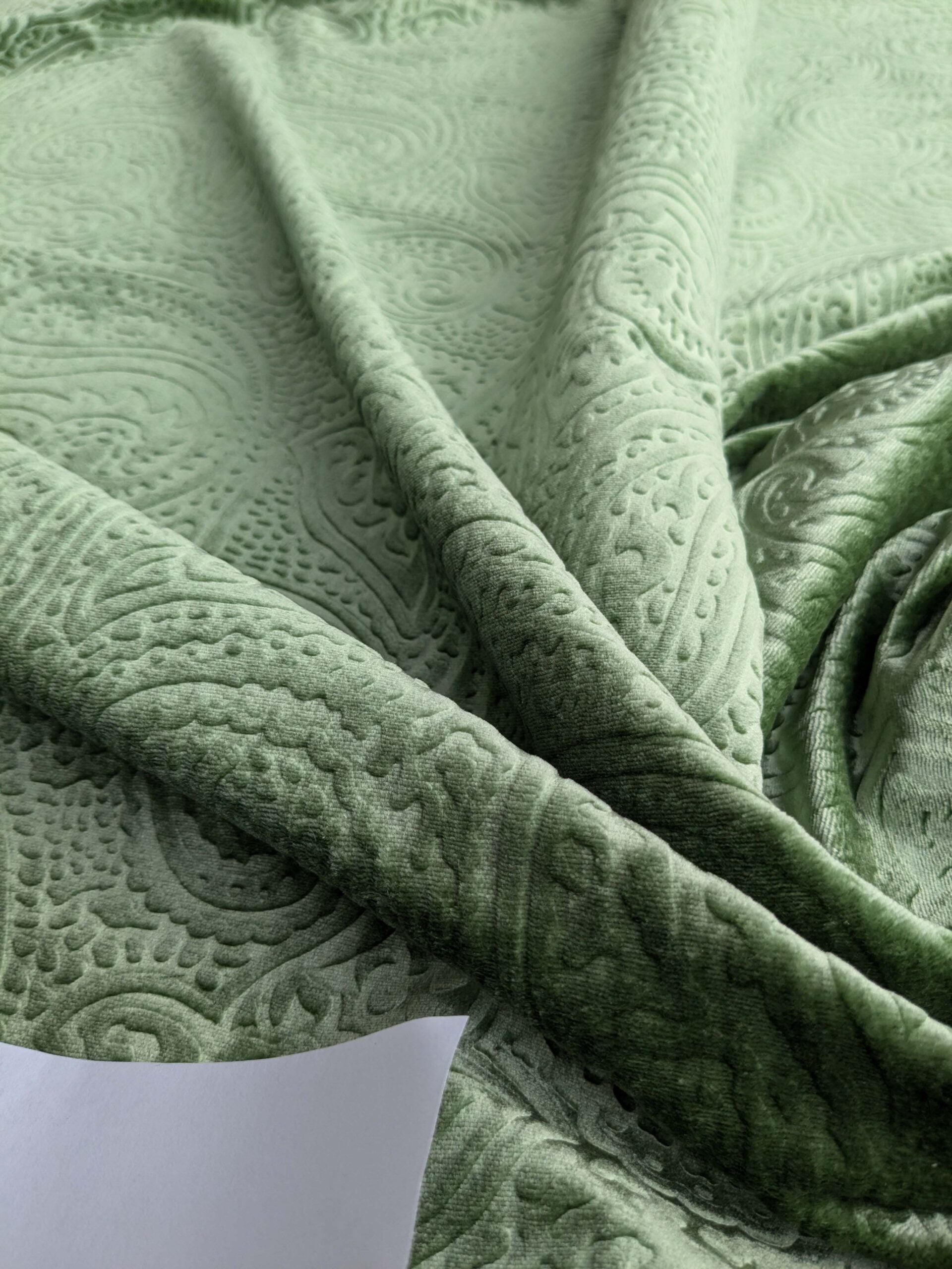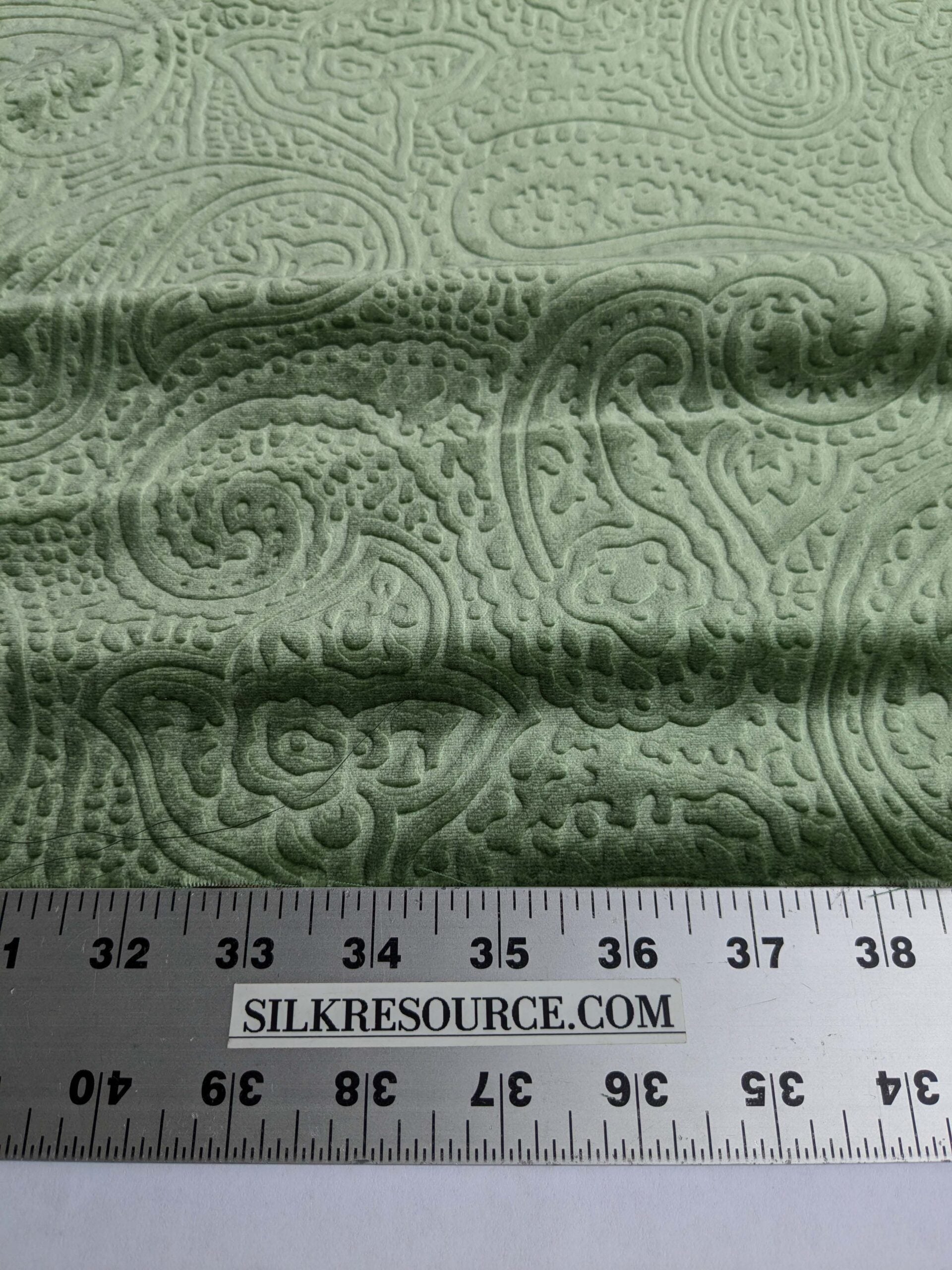 Istanbul Paisley 100% Silk Cut Velvet Gentle Spring Green MSRP USD 1000+/yard