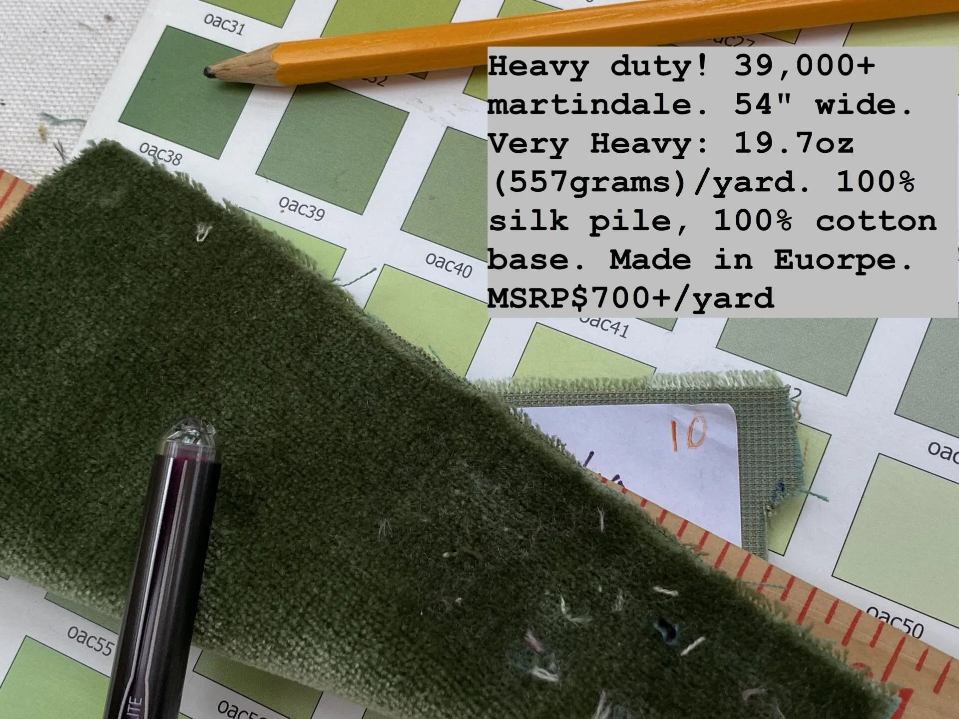 Schumacher’s “Venetian” Silk velvet: 20,000 martindale, MSRP USD568/yard