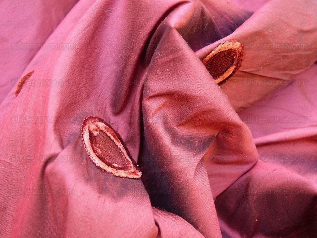 Kravet 100%silk Dupioni Chenille Embroidery Red "moon" Circle