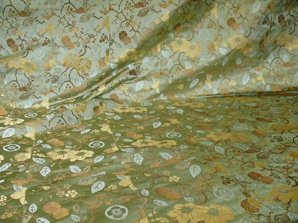 Very high quality silk made for high end designer. Inspired by Chinoiserie patterns. Magnolia, winter plum, camellia, peach blossom. Exquisite & lush. Highly iridescent!