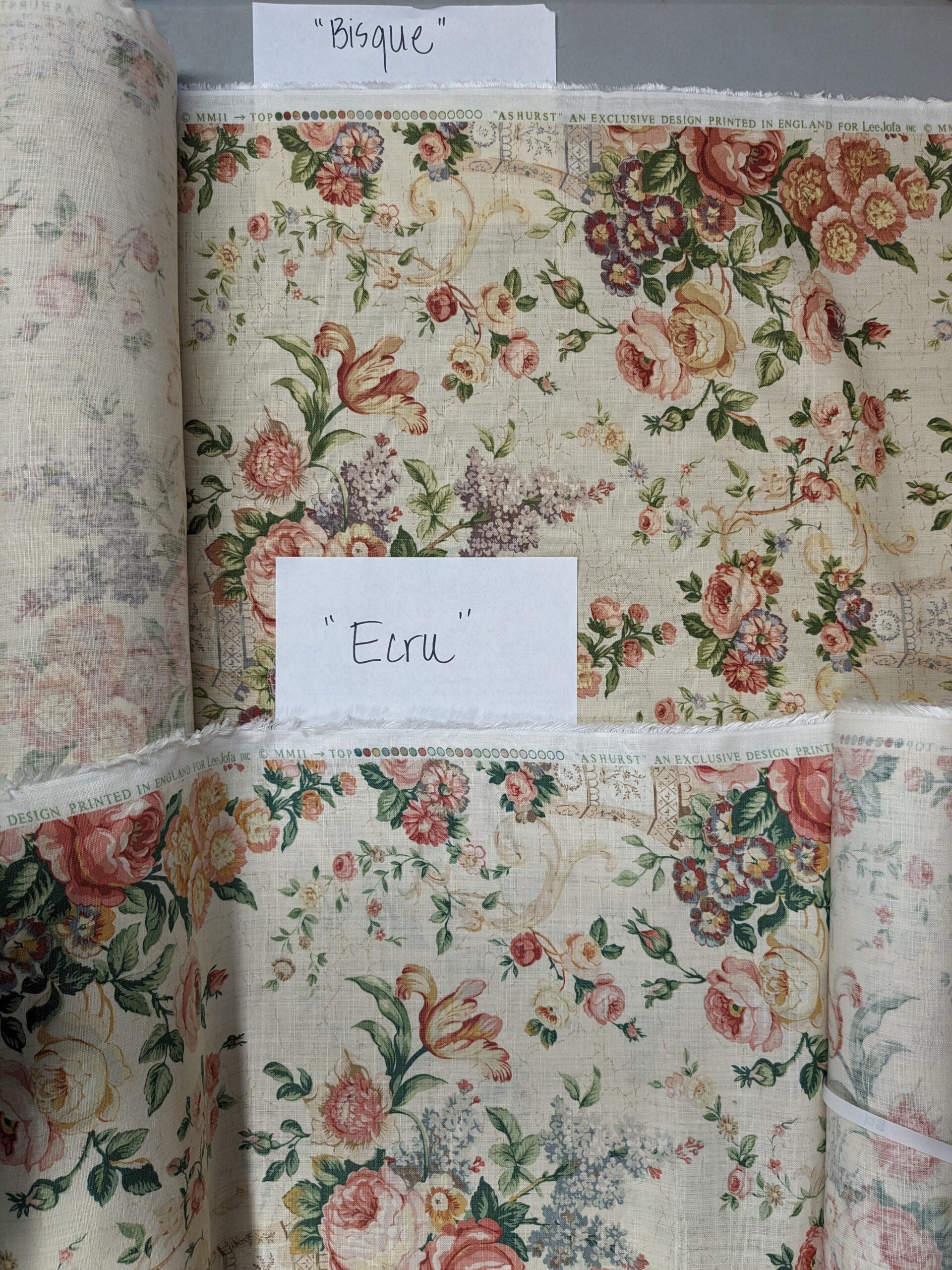 By Yard Lee Jofa Ashurst Peony Tulip Lilac Rose 100% Linen Print on Ecru Handprint English Chintz UK MSRP USD 139/Y