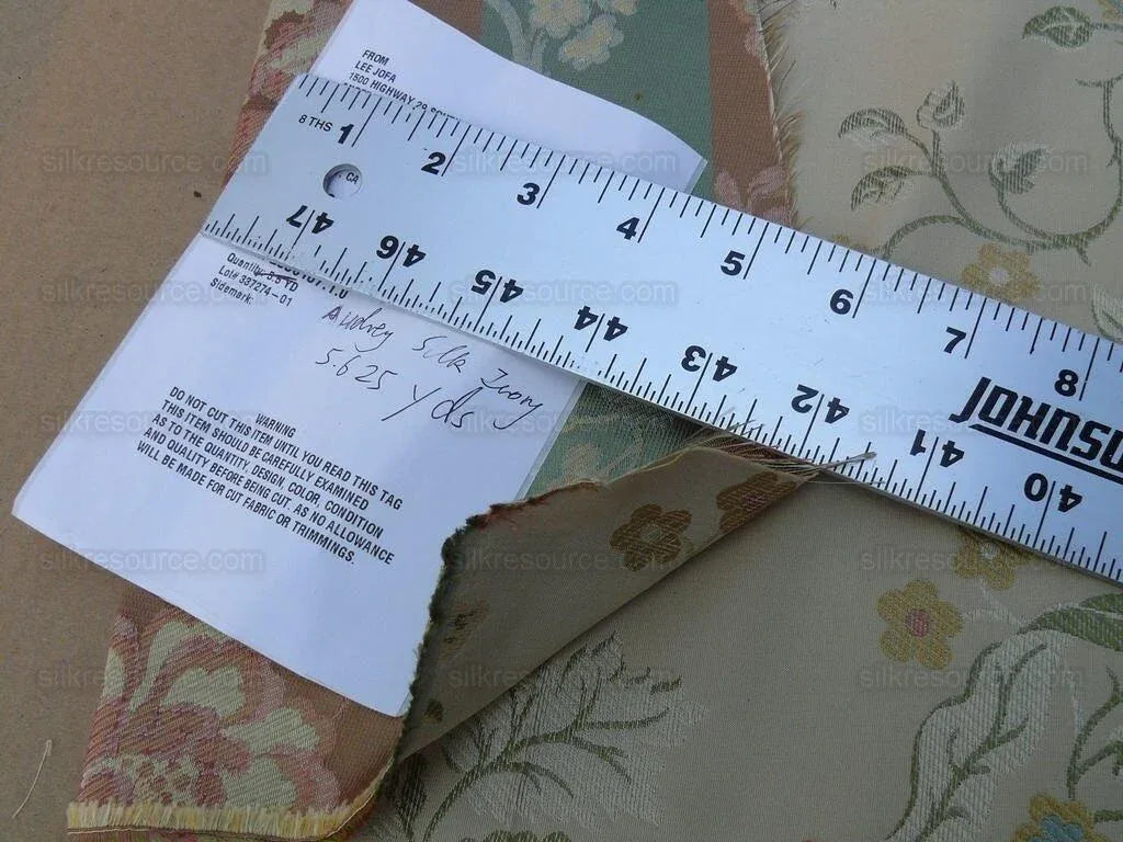 Retail price: $286/yard a few years back. Now similar silk lampas goes for at least $300/yard.
