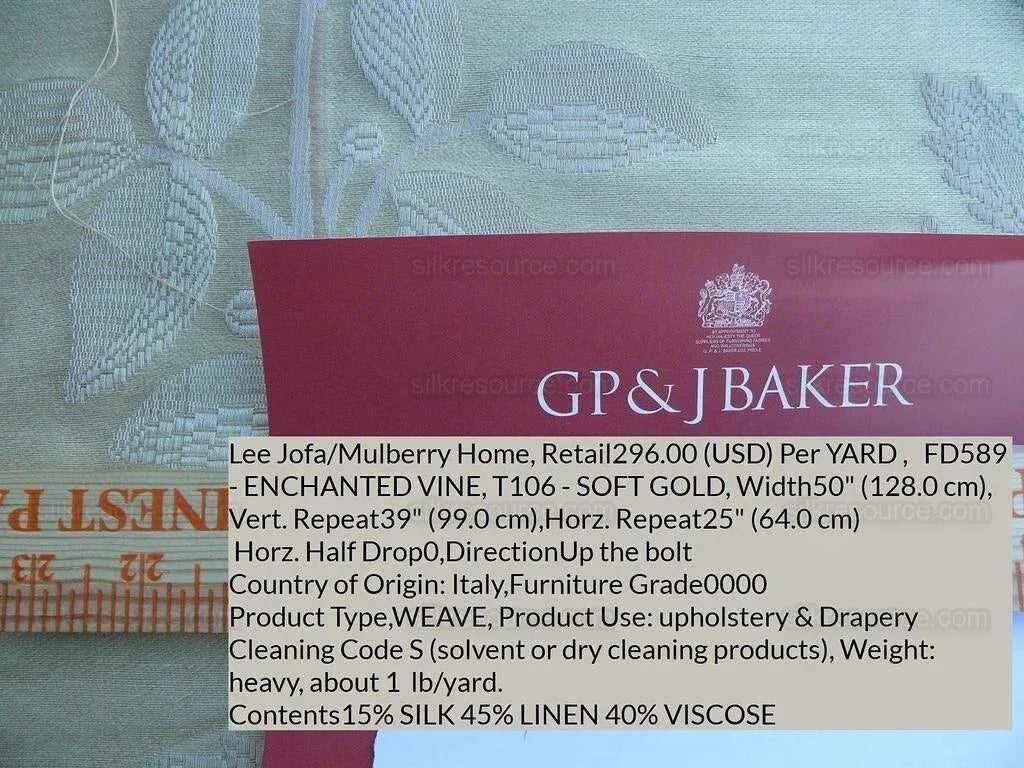 Lee Jofa Mulberry Home Enchanted Vine Soft Gold Pale Green Silk Lampas MSRP USD 296/y