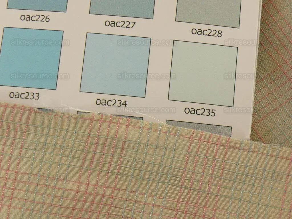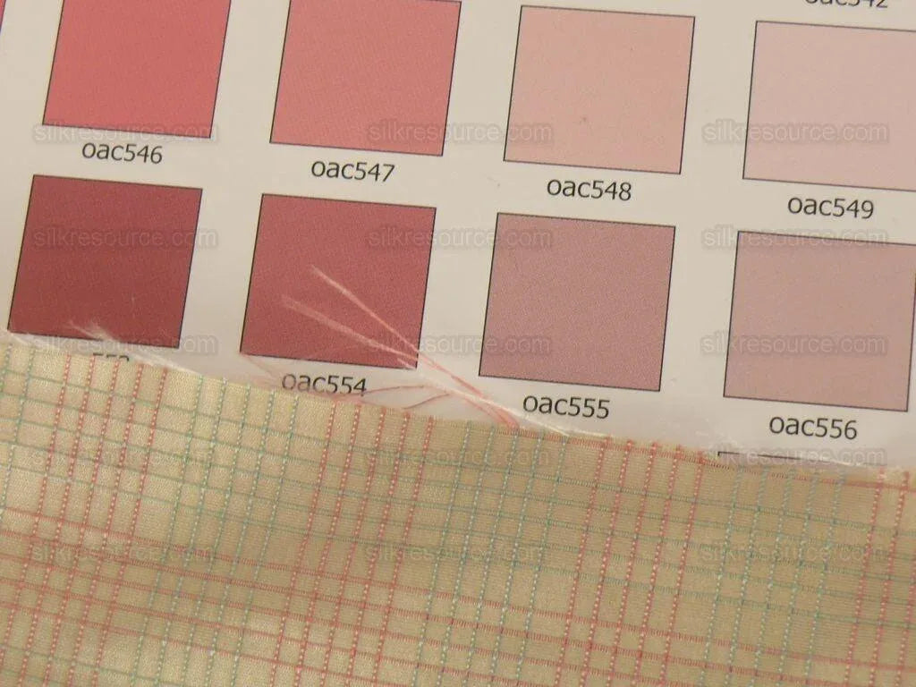 Background is warm natural. NOT white Plaids in Subtle muted peony pink, muted green. The lines are very fine and this plaid literally can work as a texture/solid. Reversible. Crisp and very full body. Silk from Italy is just different... The volume, the subtly, the luminous sheen. Although officially a "plaid", it functions really more like a solid with subtle color variations, esp. for bigger space. The luminous sheen of Italian silk---like nothing else...as if it has a life within... Superb quality---exceptional sheen & upholstery rated! Weight: medium weight for 100%silk. About 0.3lb per yard. Silk from Italy is just different...The volume, the subtly, the luminous sheen.Although officially a "plaid", it functions really more like a solid with subtle color variations, esp. for bigger space.Imagine is not being a plaid, but a solid with iridescent subtle colors----when your drapery or furniture is done, that's how it actually will be.