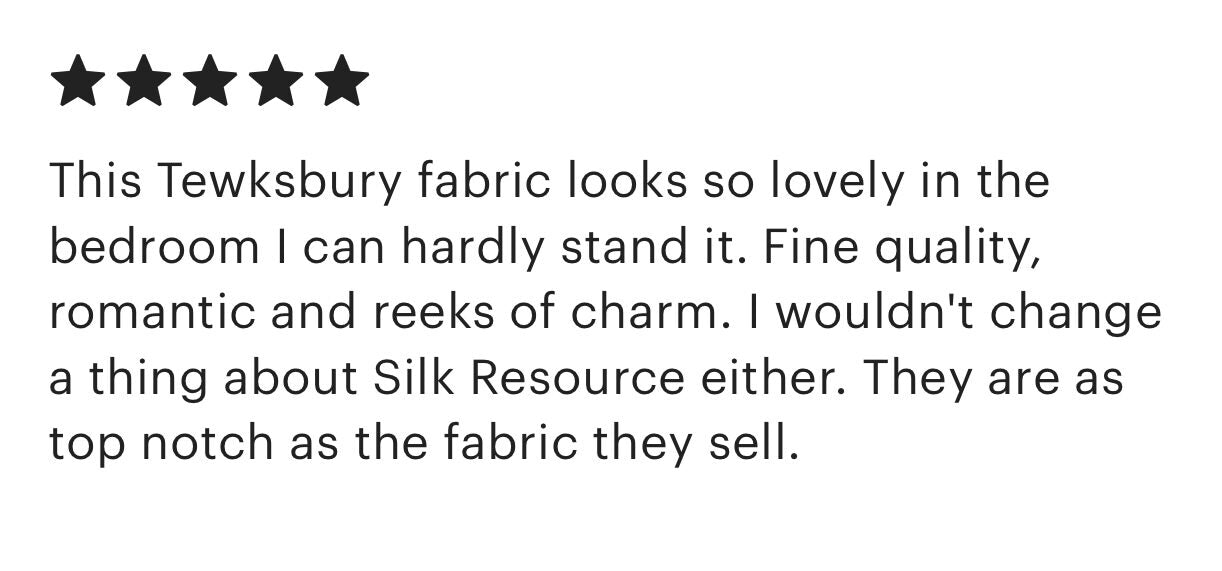 "This Tewkesbury fabric looks so lovely in the bedroom I can hardly stand it. Fine quality, romantic and reeks of charm."