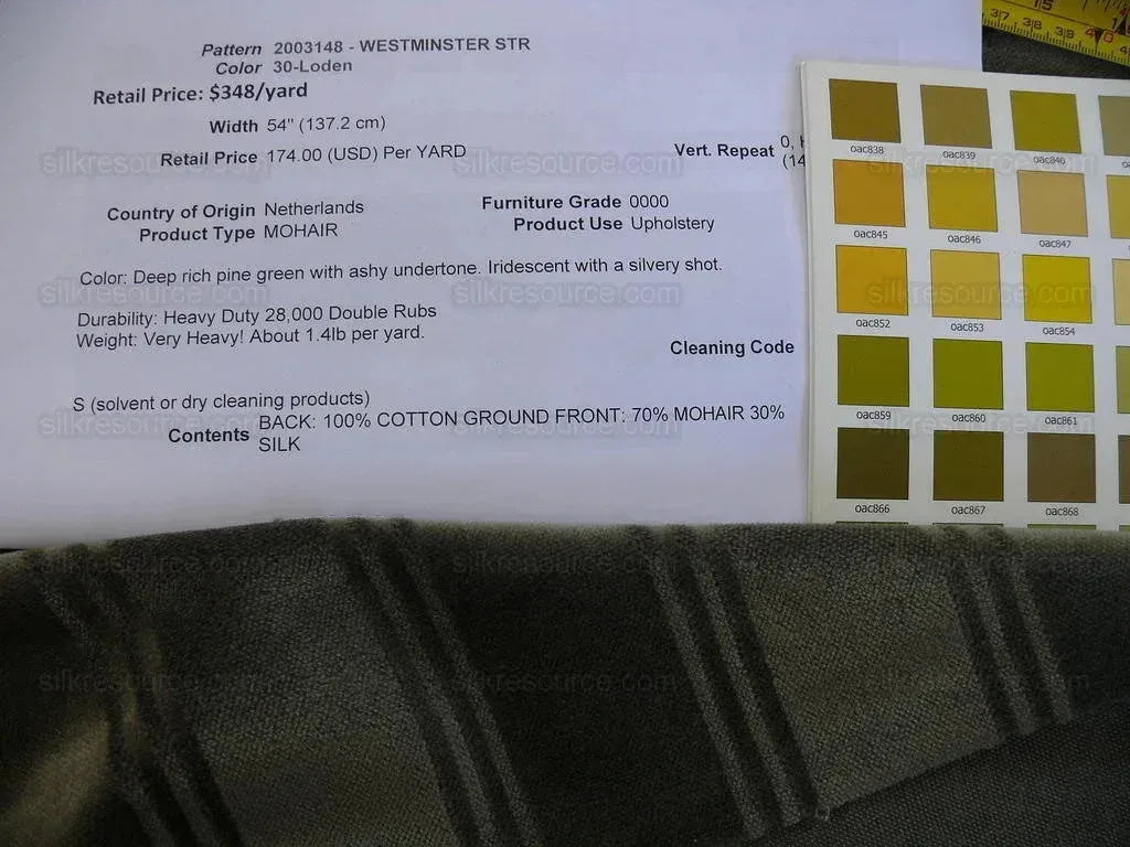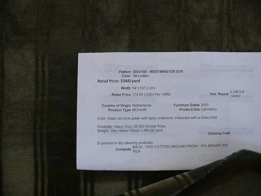 See photos for details Westminster Stripe is something that you imagine in that ancient Abbey of London, a castle or a palace. A client of ours use it to restore an antique automobile made in the 1910’s because it is almost identical to the original mohair velvet used in that very car, more than one hundred years ago. This says 2 things: how durable such velvet is and how expensive it was and still is.