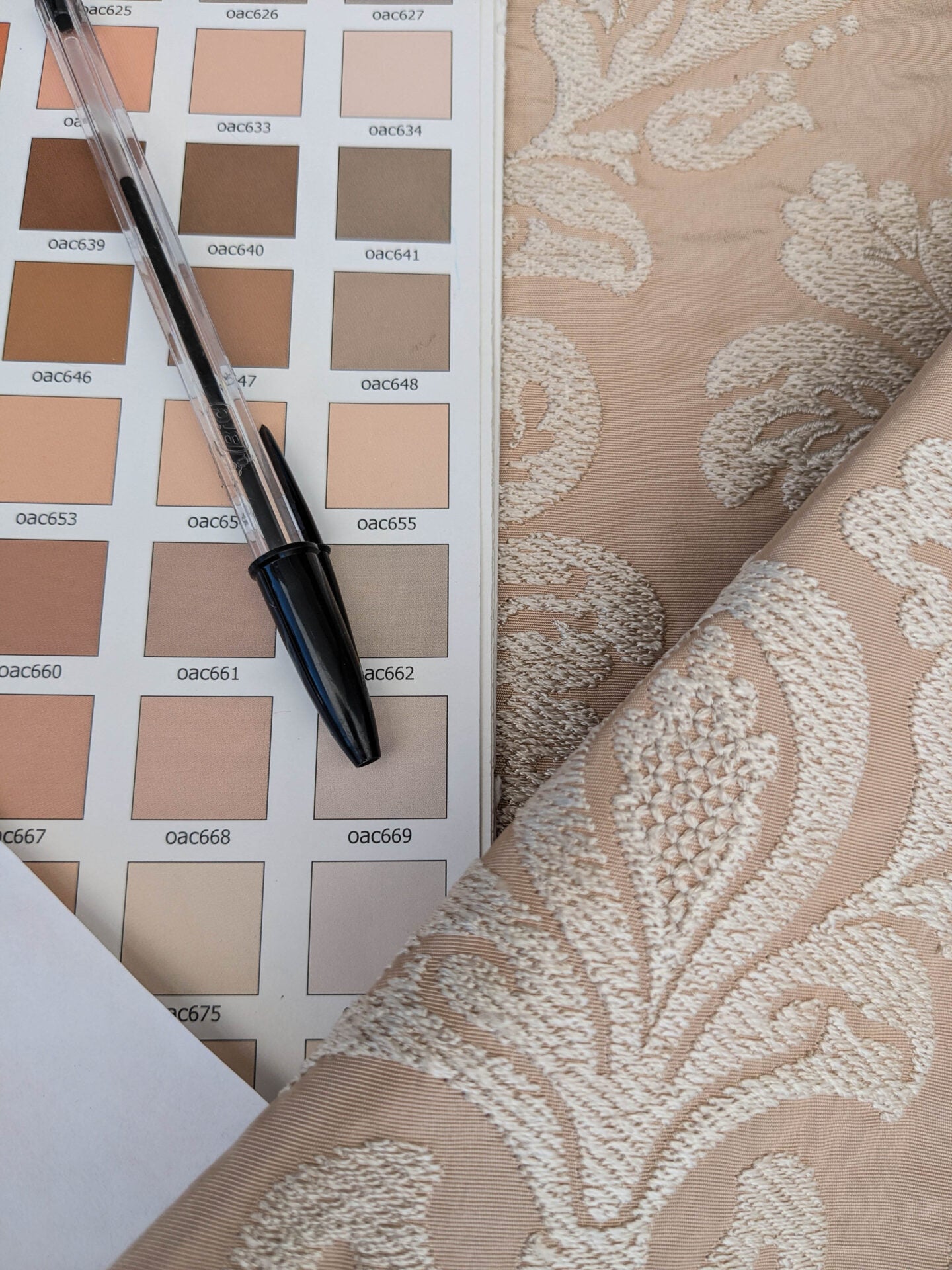Lovelace Embroidery on Silk Faille Renaissance Damask Naked Peach Pink MSRP USD 413