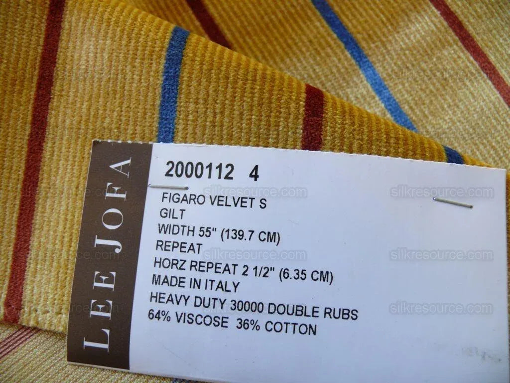 By Yard Lee Jofa Figaro Velvet Red and Blue Stripe On Gold Silky Heavy
