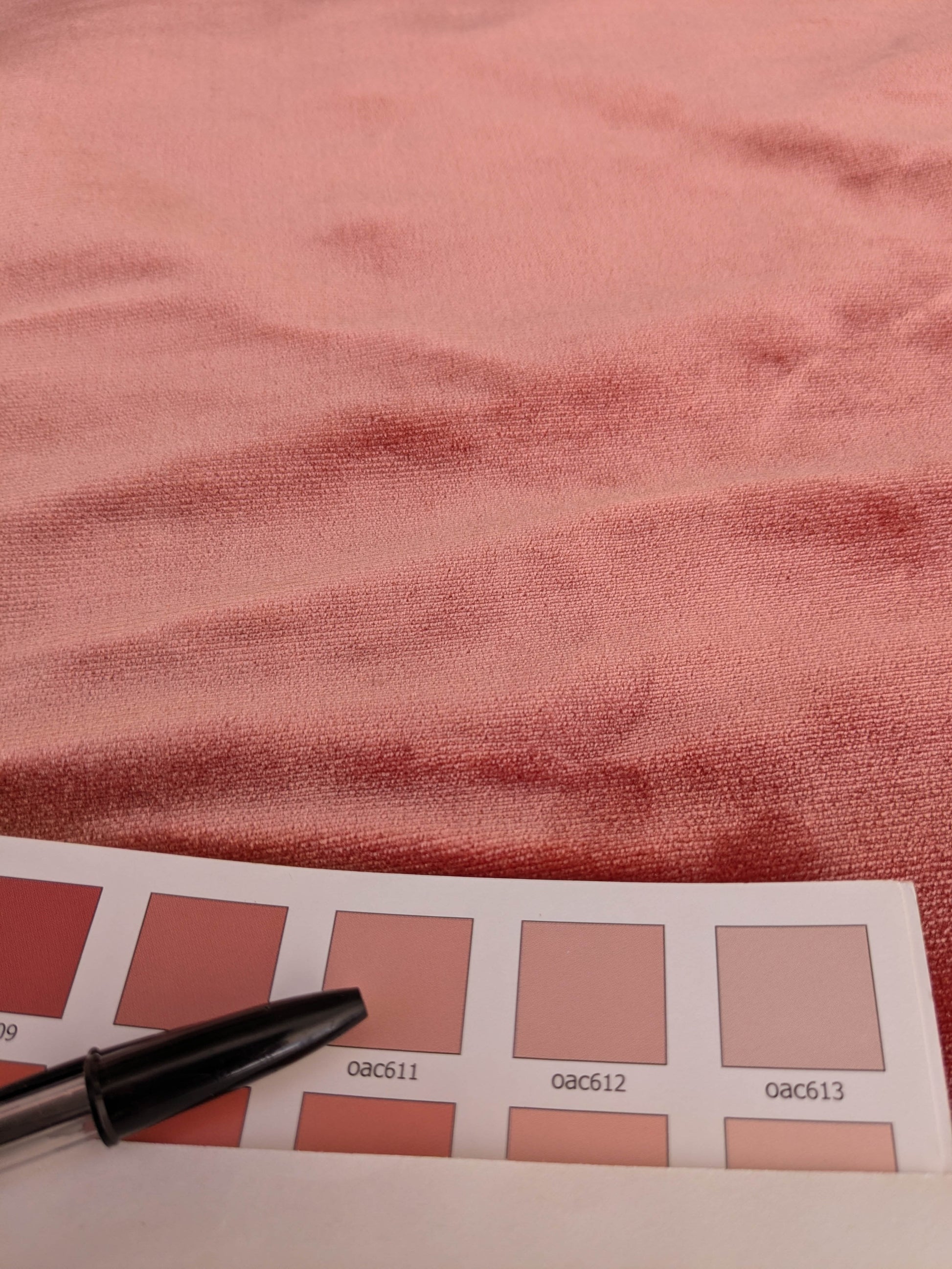Base is 100% cotton, Velvet Pile is 60% mohair, 40% silk.