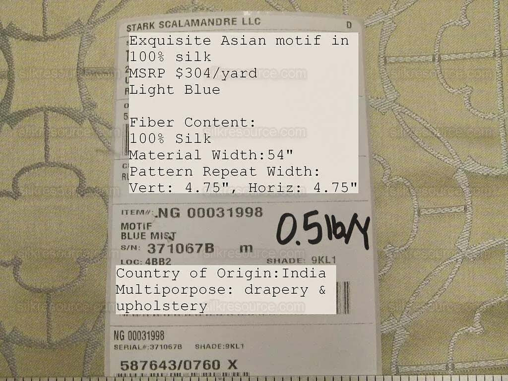 by yard Motif Blue Mist Medallion Asian Lattice From Scalamandre 100% Silk MSRP USD 304/Y