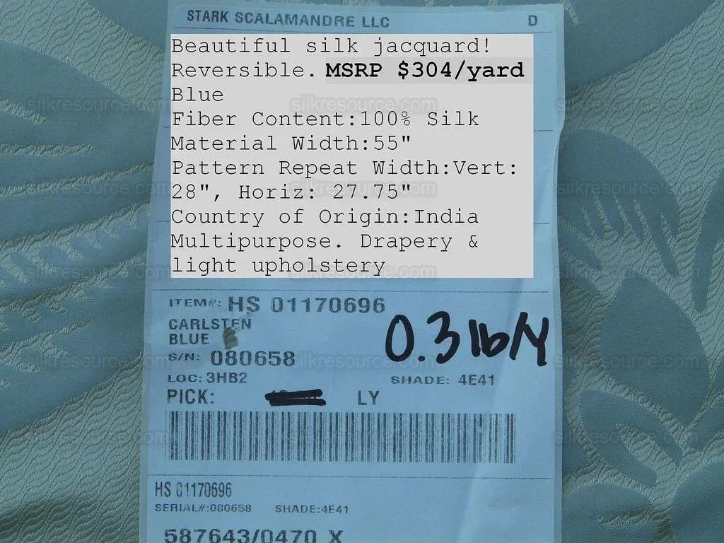 Old World Weavers 100% Silk Damask Carlsten Blue Aqua Arts & Crafts MSRP USD 278/Y