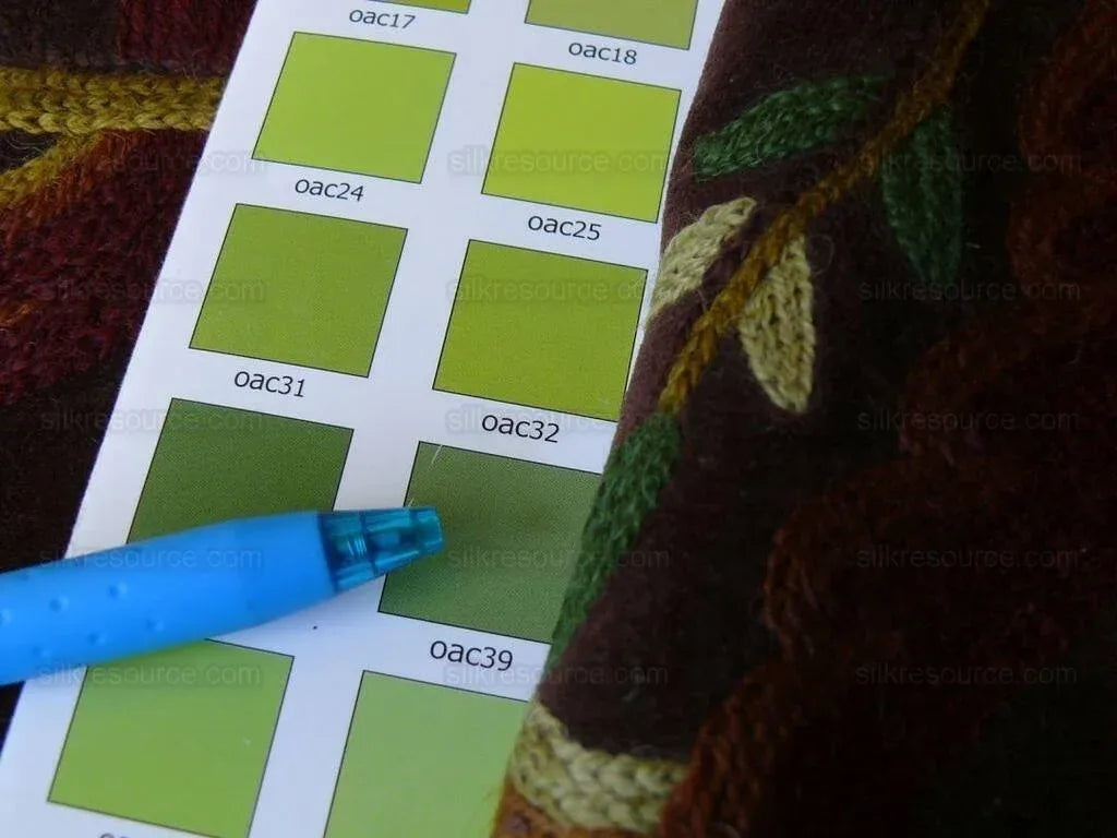 Total available (piece number & yardage): 22.5Y, 2.7Y World Weavers/Scalamandre Sikandra Velour is such a piece of cuddly luxury that you will keep petting it with your eyes and fingers... Heavy and dense wool yarn is hand embroidered onto heavy velvet base. Velvet base is 60% rayon and 40% cotton. Crewel embroidery is in wool. The wool threads form Jacobean style flowers, foliages and vines, then golden threads are added to highlight their silhouette. The whole production process is long and labor intensive, thus the MSRP at $568/yard. Once you feel the weight of 1lb 10 oz (740grams) per yard, you can tell same amount of material can use to produce 3-4 yards of lesser quality ones. The white wool on light gold background projects such tranquility. As drapery, it will drape like liquid and offer first grade insulation, privacy as well as aesthetics. As upholstery, it will anchor the whole room and offers such intimacy and comfort to the user. This will also be a favorite throw, a dream bedding set or fantastic pillows. Pattern Name: Sikandra Velour Color: Neutral, Beige, White on warm gold Content: 60% Rayon, 40% Cotton with wool Embroidery Width 56", HR 56", VR: about 36" (see inch ruler in photo) Color: background is deepest chocolate brown (with a hint of deep burgundy side). Embroidery in sage green, brown, terra cotta, red & yellow. Country of Origin: India Weight: Heavy and liquid soft! , about 1lbs/yard MSRP $568/yard Very high end! Hand crewel on velvet Immaculate, rich & heavy. (Your purchase will be in one piece when possible.)