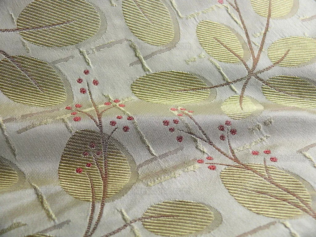 by yard 100%silk Lamas Red Berry Gold Bush Shimmers!
