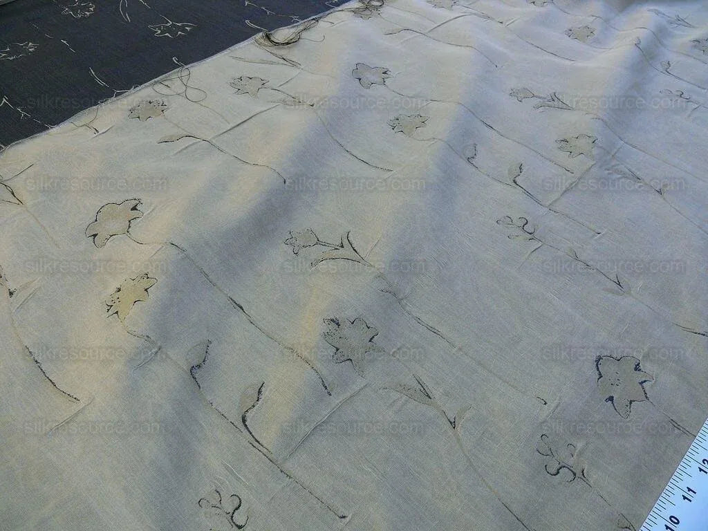Scalamandre Grey Watkins Orissa Semi Sheer Gold Silk Double Organza Damask Tulip Wildflower MSRP USD 212/Y