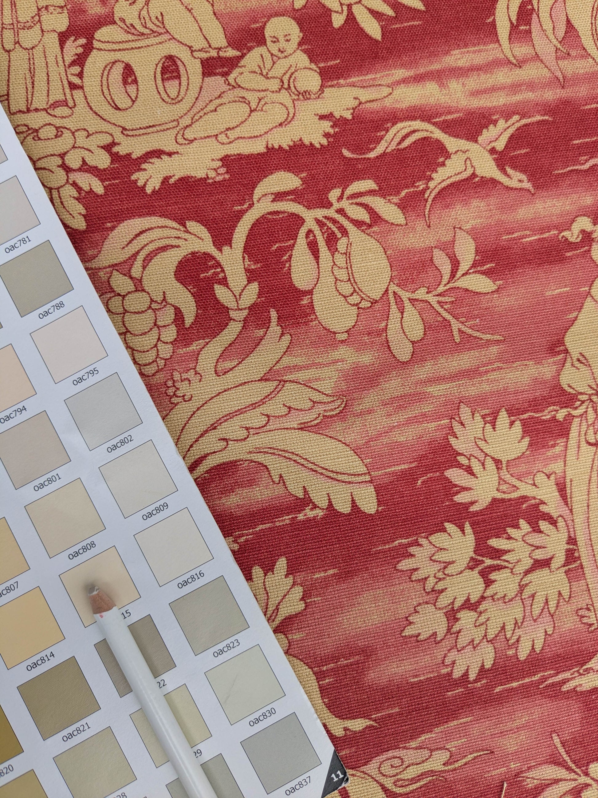 Printemps de Chinoise Chintz Garden Landscape Figure Rose Fabric -Pink Red Gold - By The Yard