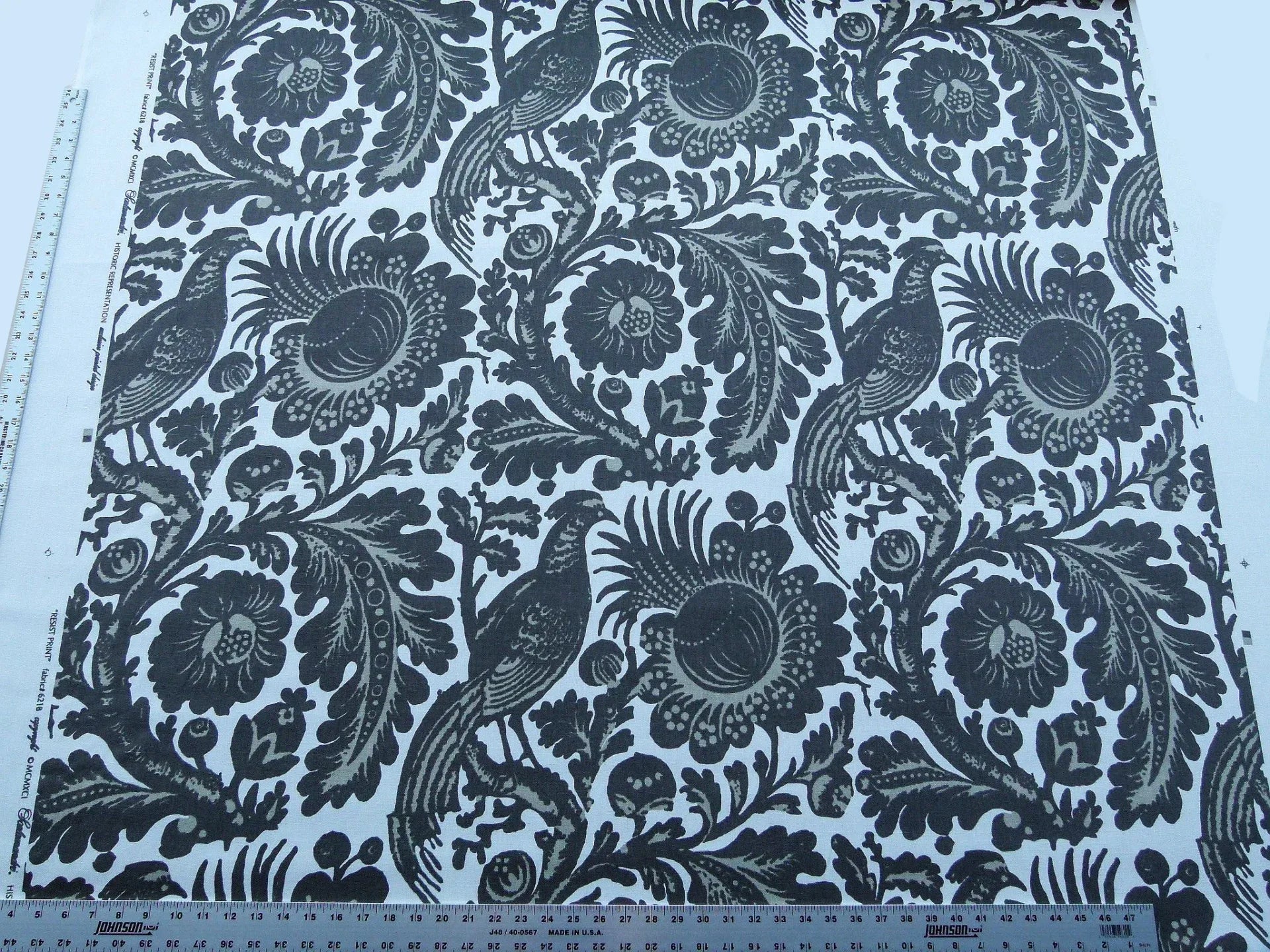 Scalamandre Resist Print Taupe Bird Tree of Life Gray White Pomegranate 100% Linen MSRP USD 300/Y