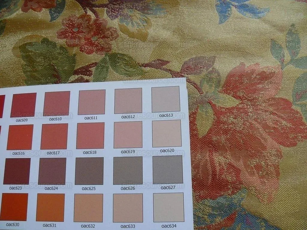 Rm Coco100%silk Lampas Autumn Tri-leaf Flower "mixed Berry" Gold Blue Red Green Purple MSRP USD 199.90/y