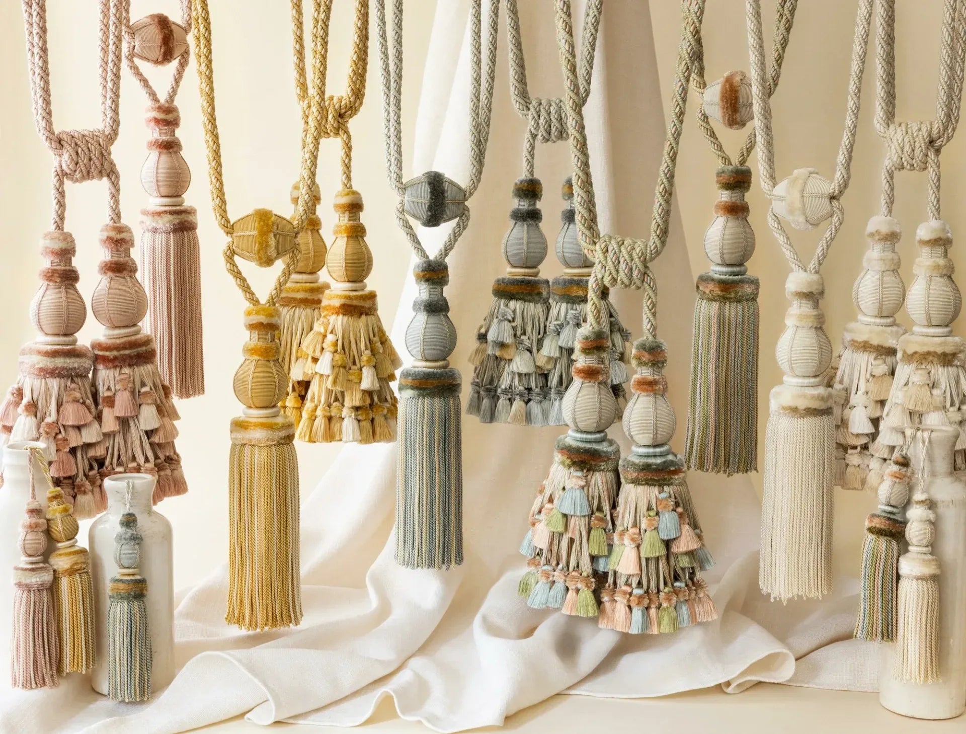 Samuel & Sons Bagatelle Double Tassel Tieback Dewdrop Silk Cotton Wood MSRP USD 700 Each