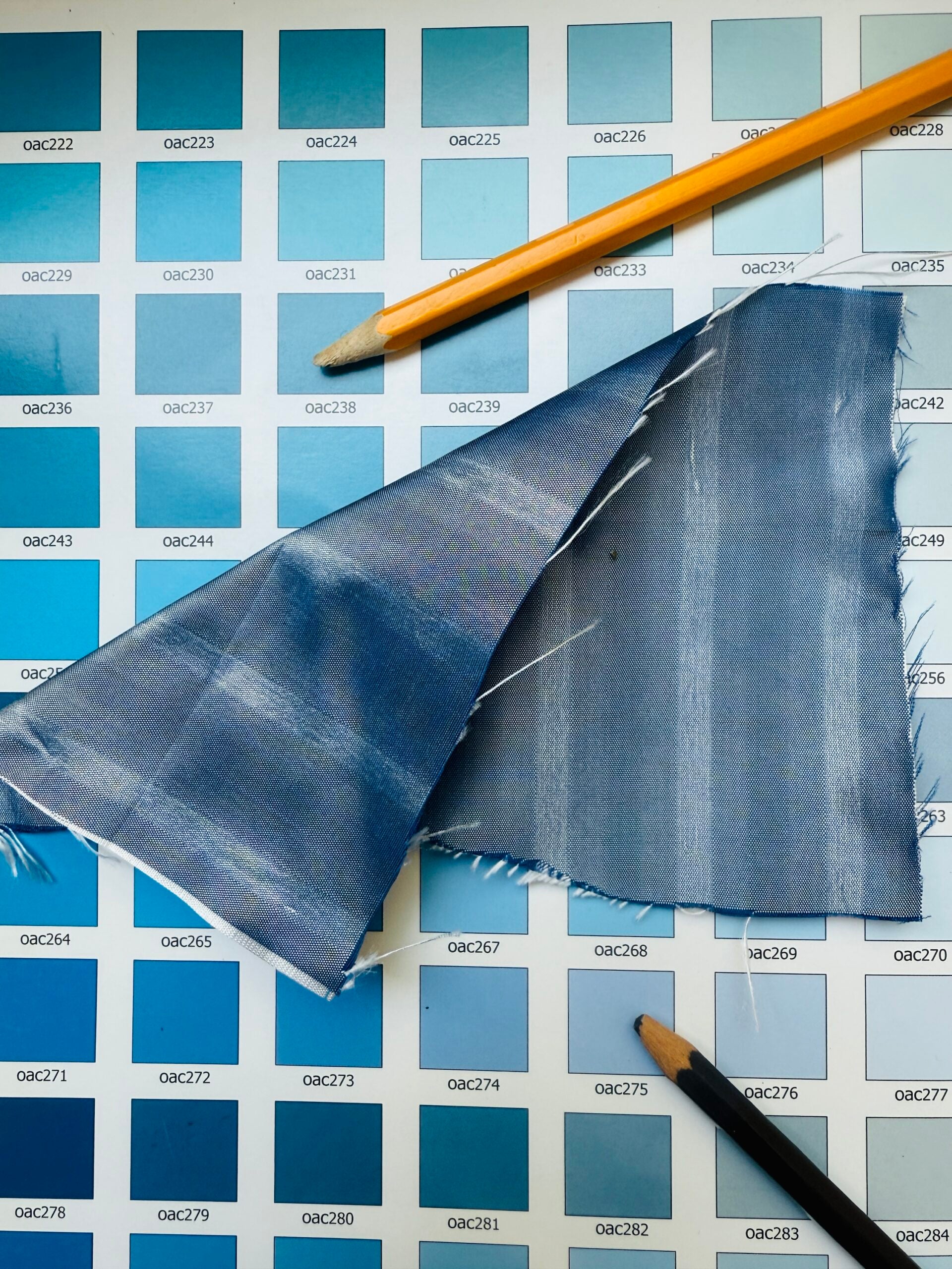 Color: Muted blue, deeper blue, sky blue, pale grey blue, cool cream white. The colors are highly iridescent!