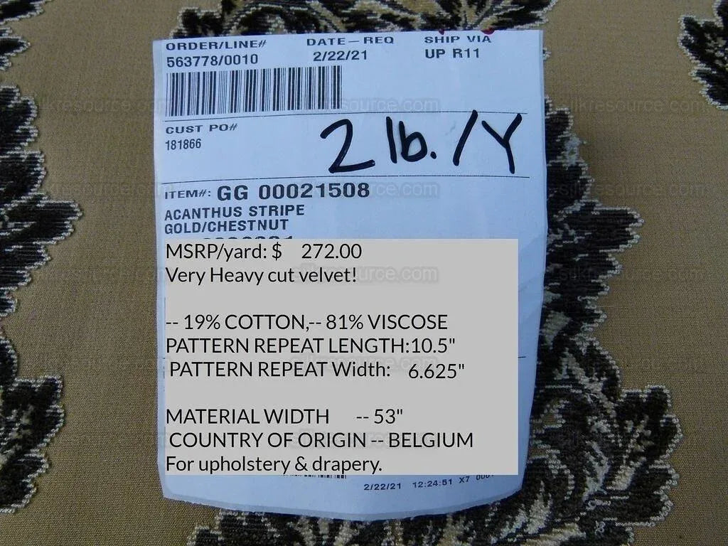 MSRP$272/yard a few years ago. Similar cut velvet now retails for $300+/yard.