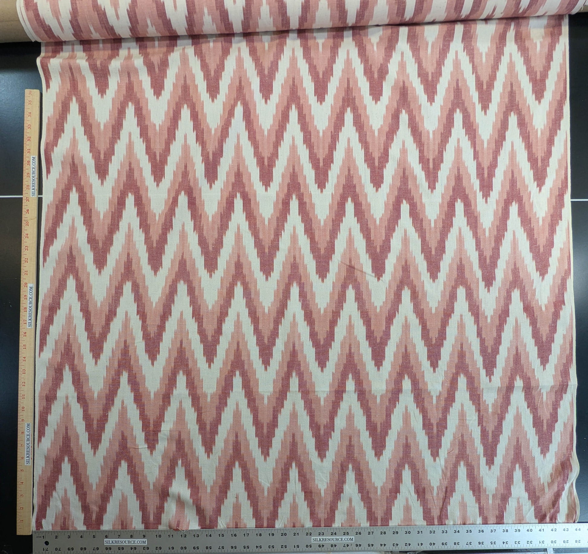 Scalamandre Adras Ikat Weave Coral Chevron Herringbone Cotton - Pink Red White - By The Yard