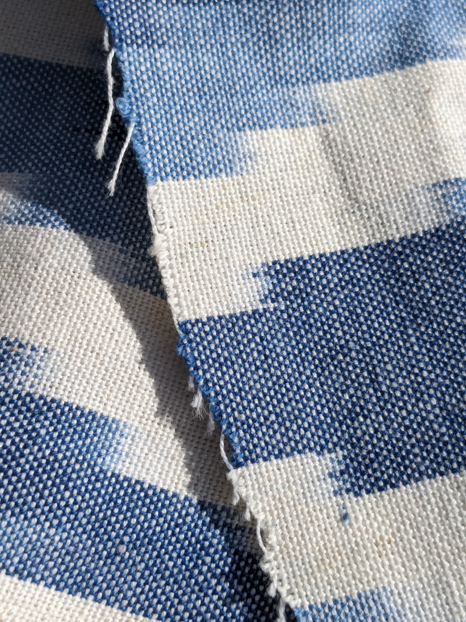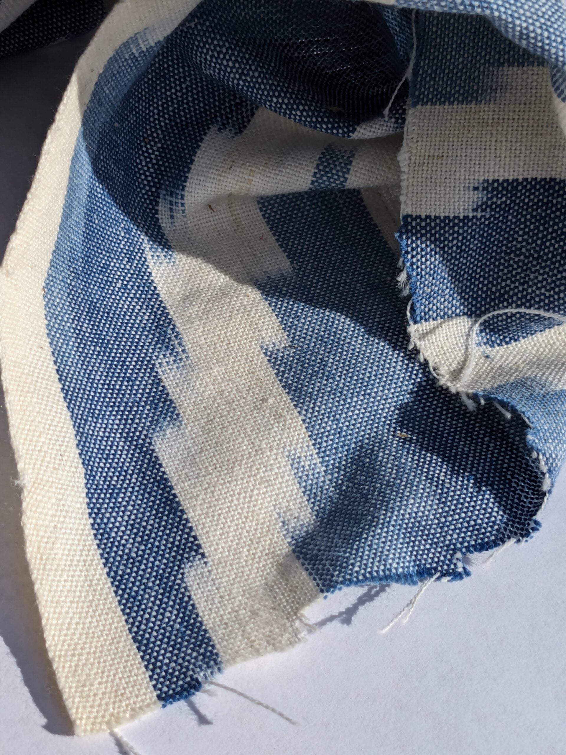 Scalamandre Adras Ikat Weave Lapis Blue White Cotton Chevron Herringbone MSRP USD150/y