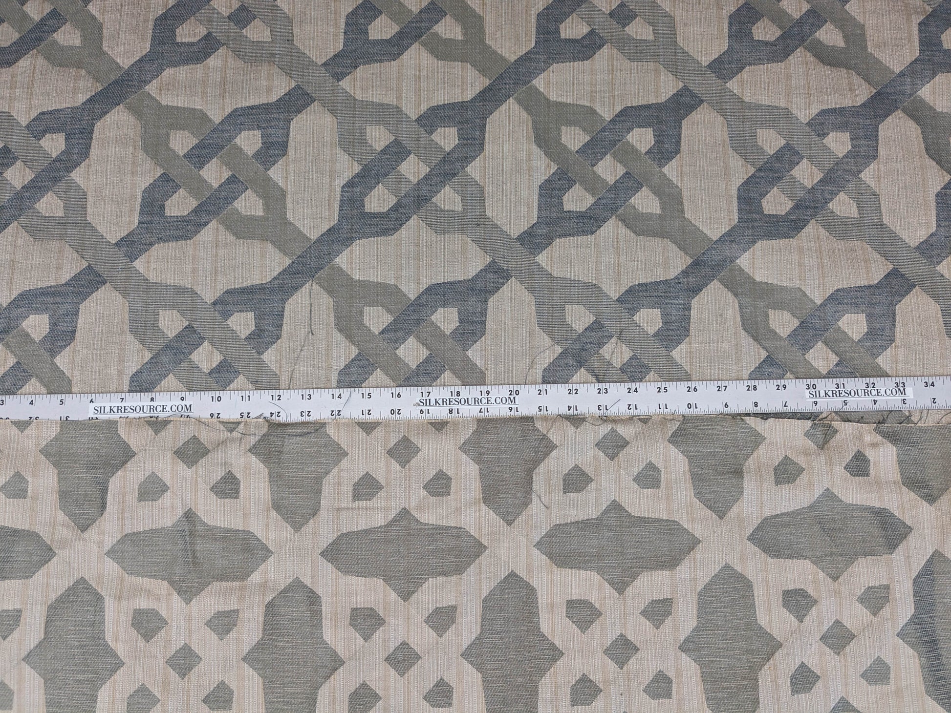 Scalamandre Alexander Carbon Beige Blue Diamond Woven Cotton Linen Blend Knots Lattice from Belle Jardin MSRP USD 428/y