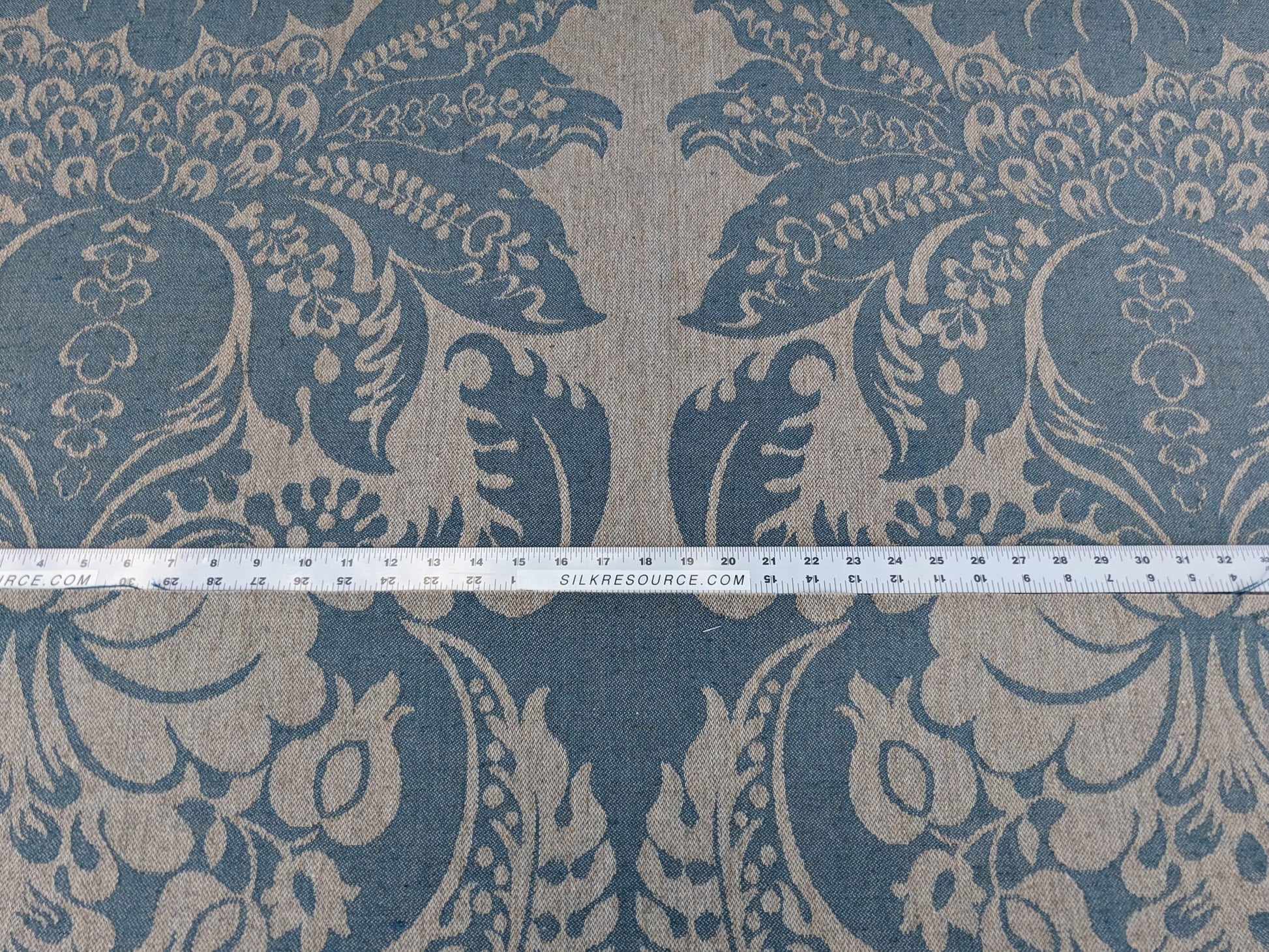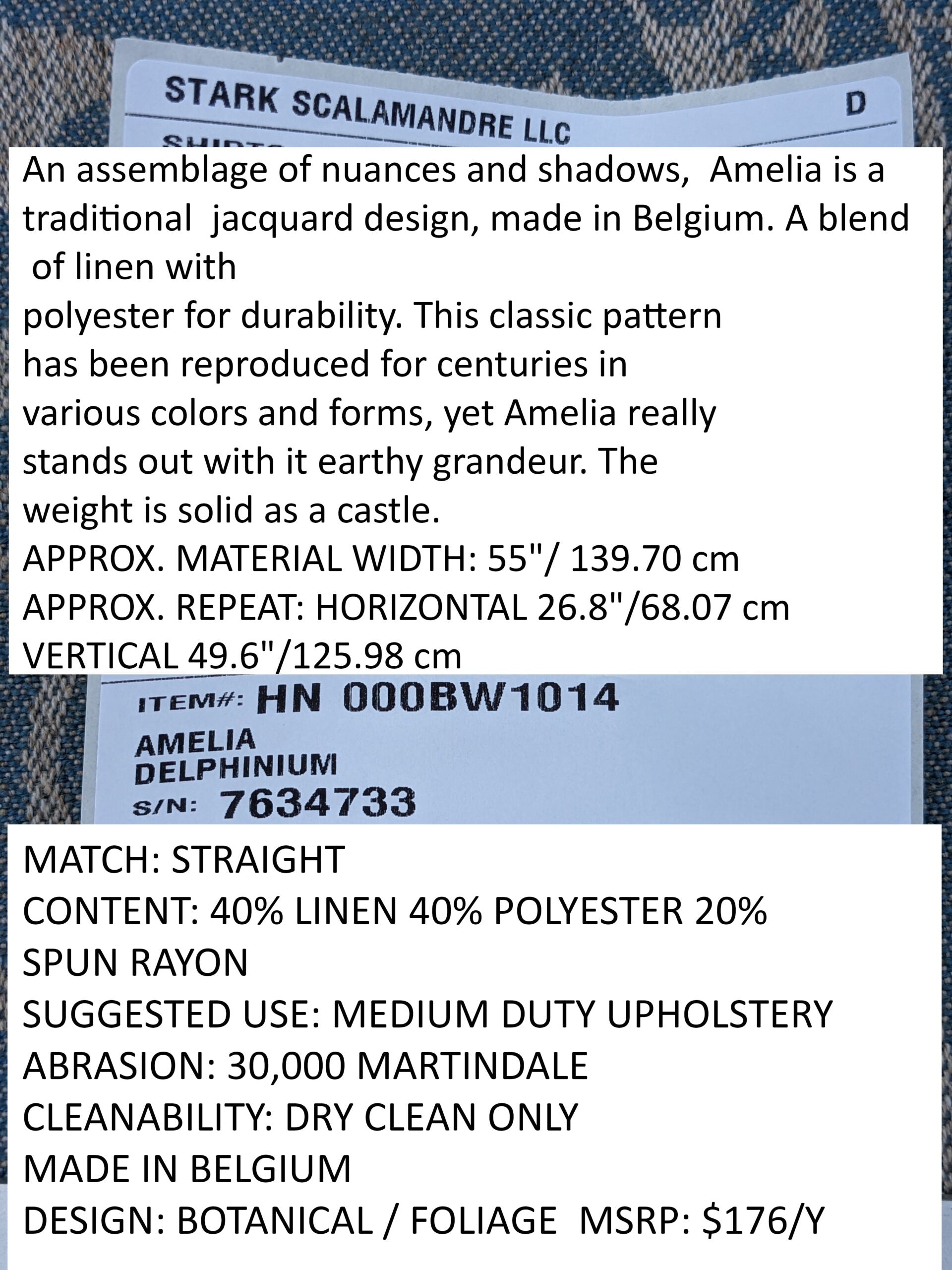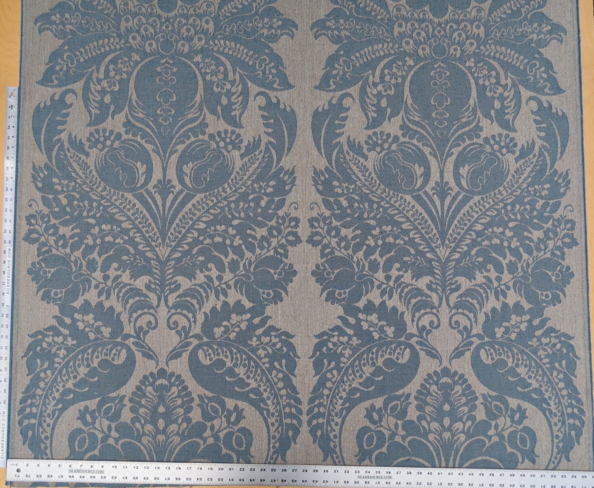 Scalamandre Amelia Delphinium Blue Renaissance Damask Jacquard Linen Acanthus Feather MSRP USD 176/y