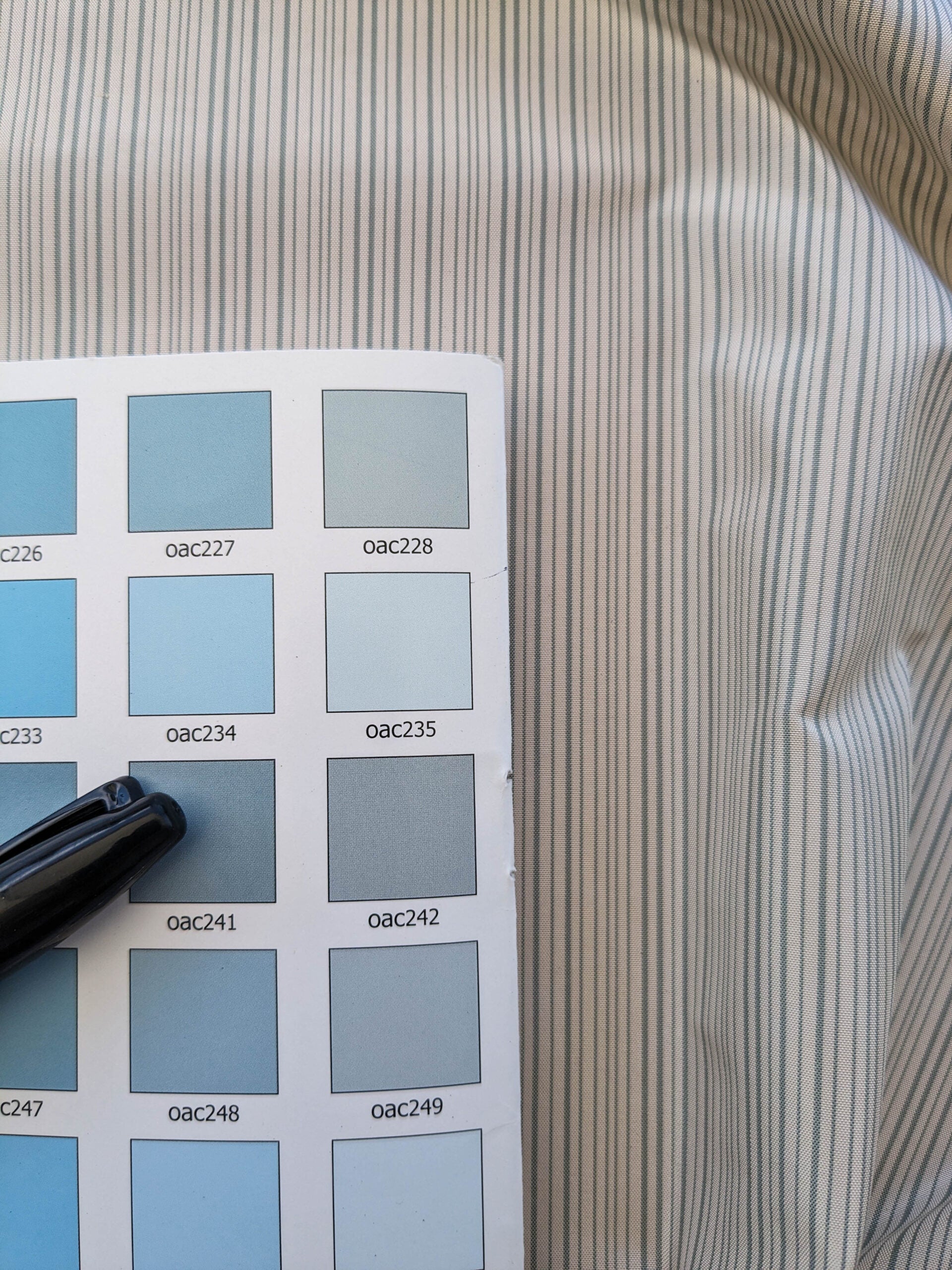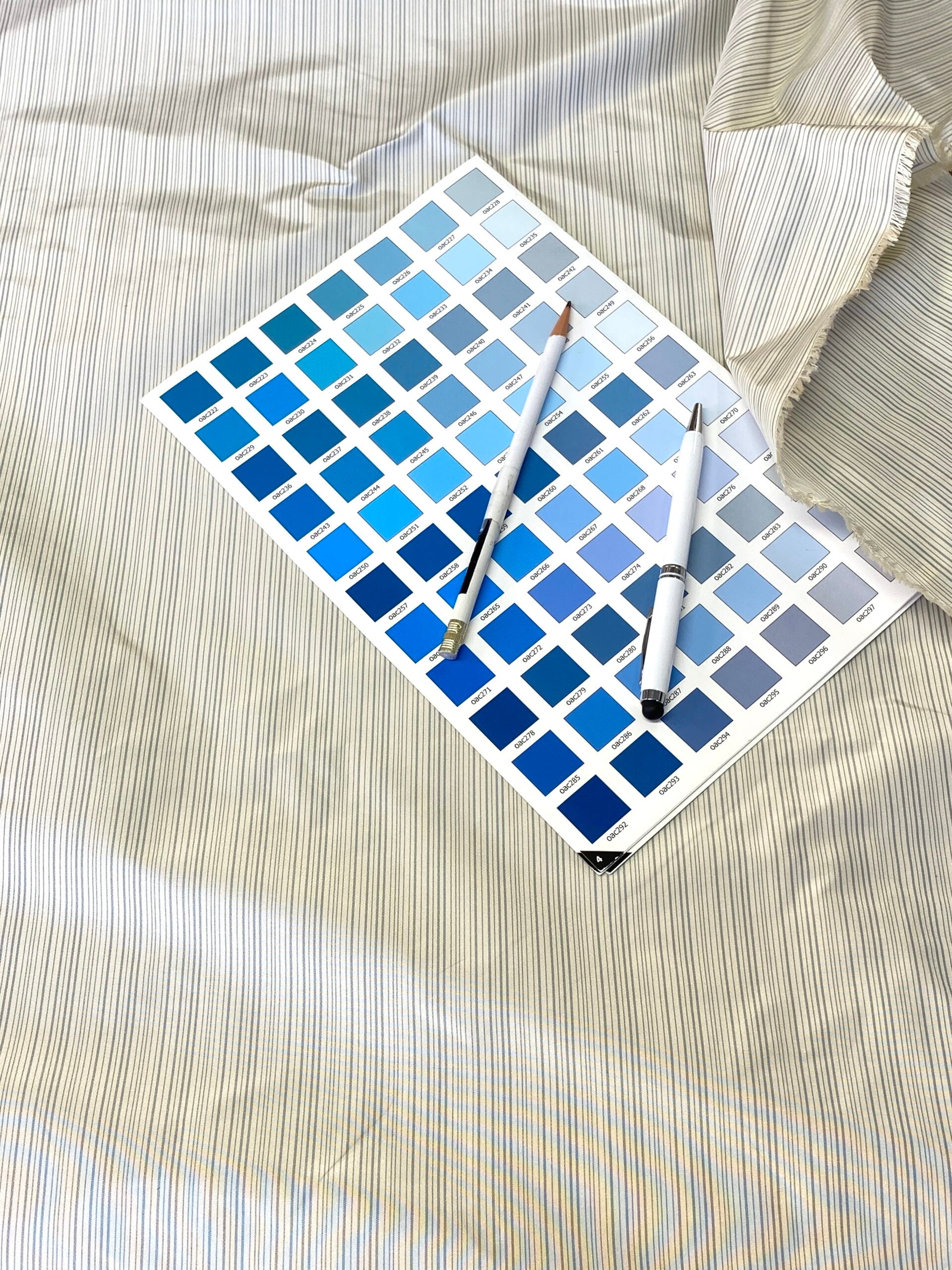 Hinson put so much thoughts into this striped silk. The stripes are varied in width, which is unusual but also makes it more fun and versatile. The jacquard weave and thickness enable it to serve both drapery and upholstery. At last, each shade is beautiful yet slightly muted. The subdued luxury will carry any project, big or small, formal or casual, into another level of radiance. The vertical soft ticking stripe of Astley Silk Stripe comes in a wide range of Colors. This taffeta fabric also is easy to use.