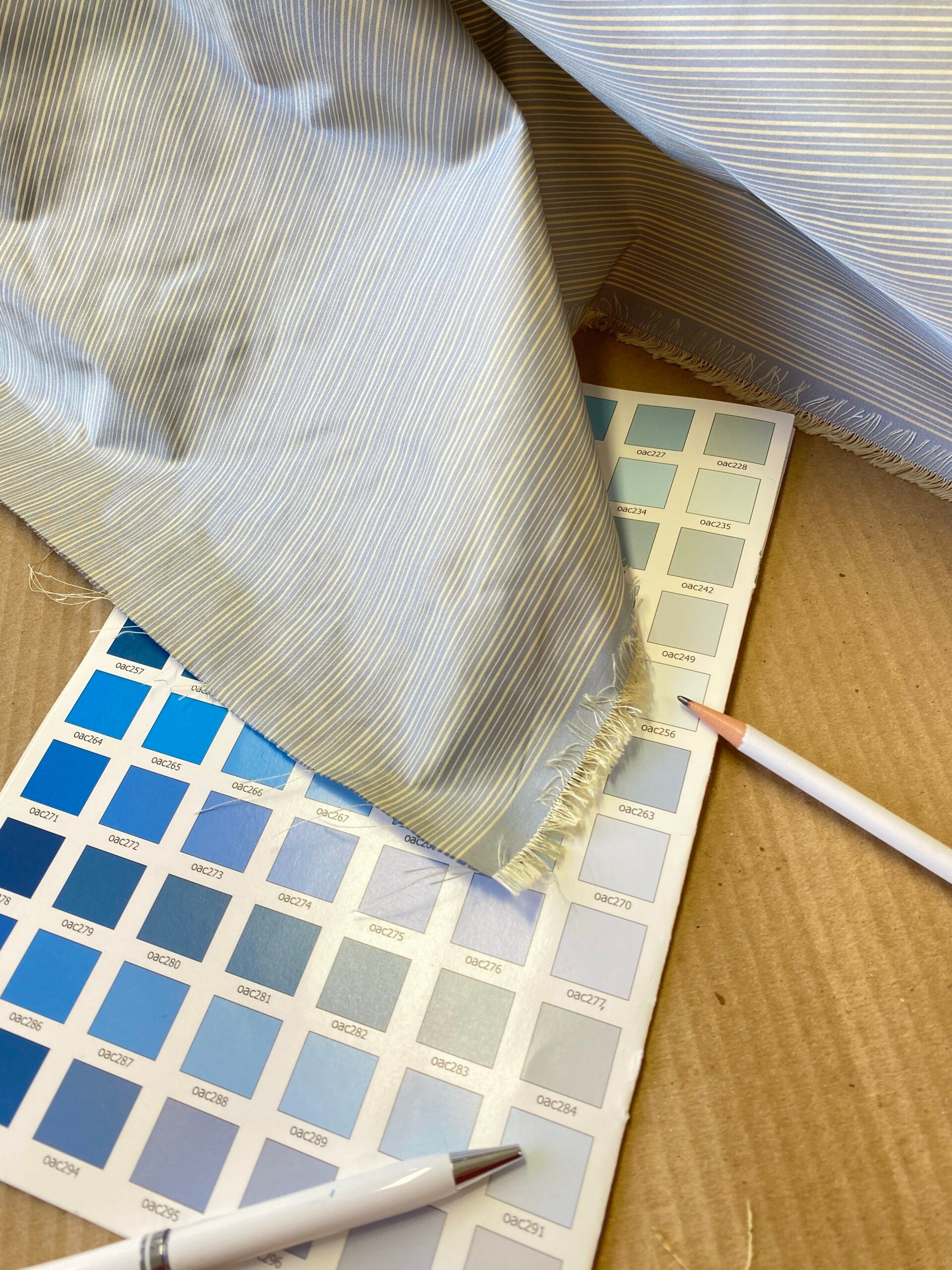 Scalamandre Astley Silk Strie French Blue White Pin Stripe Small Scale MSRP USD350+/yard.