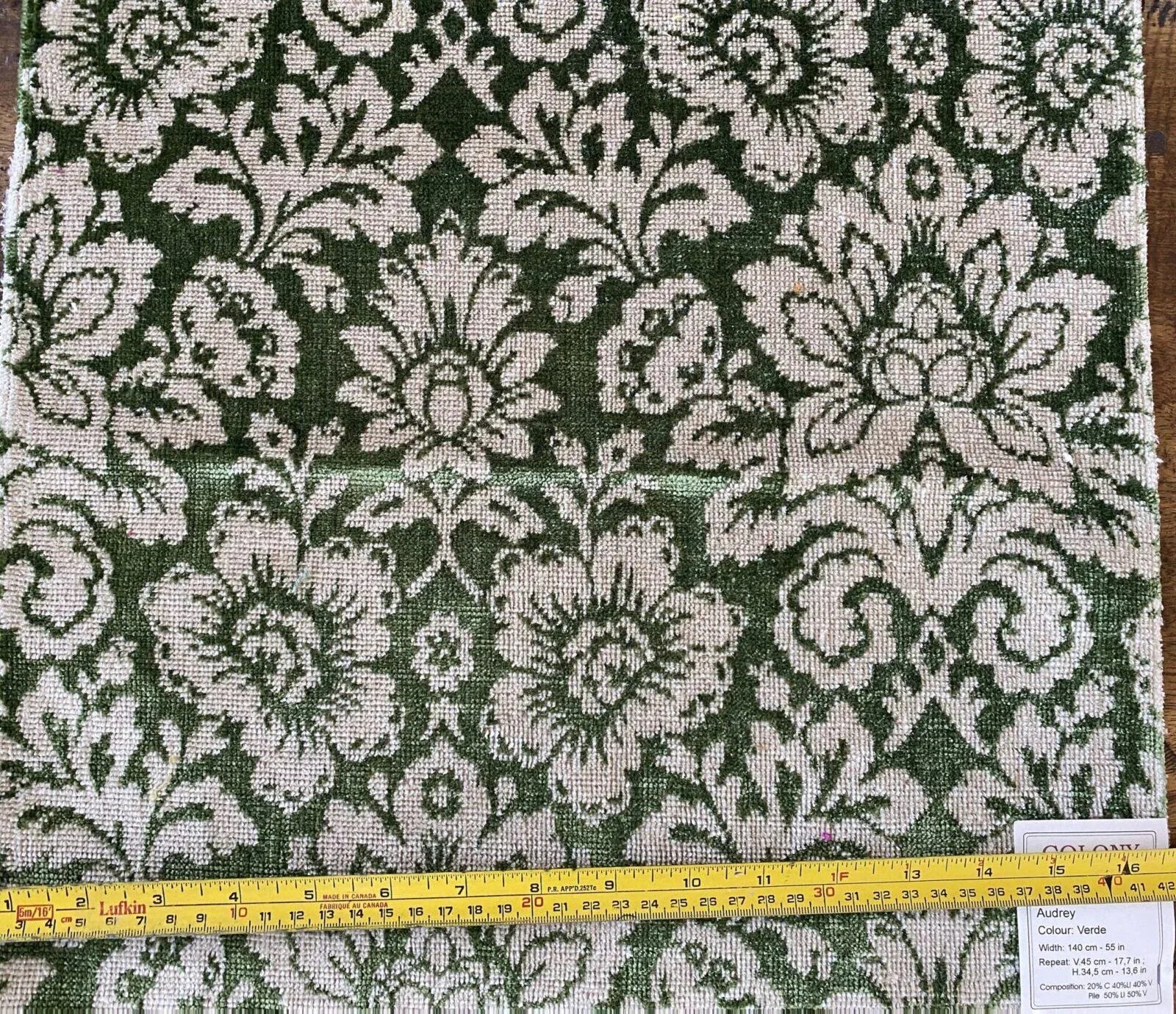 Scalamandre Audrey Cut Velvet Linen Green Renaissance Artichoke Rose MSRP USD 427/Y