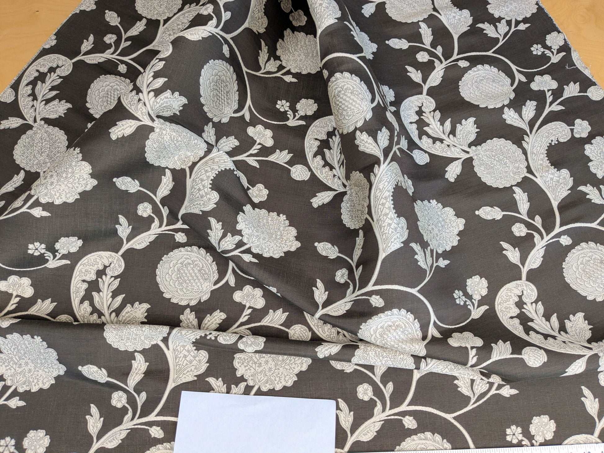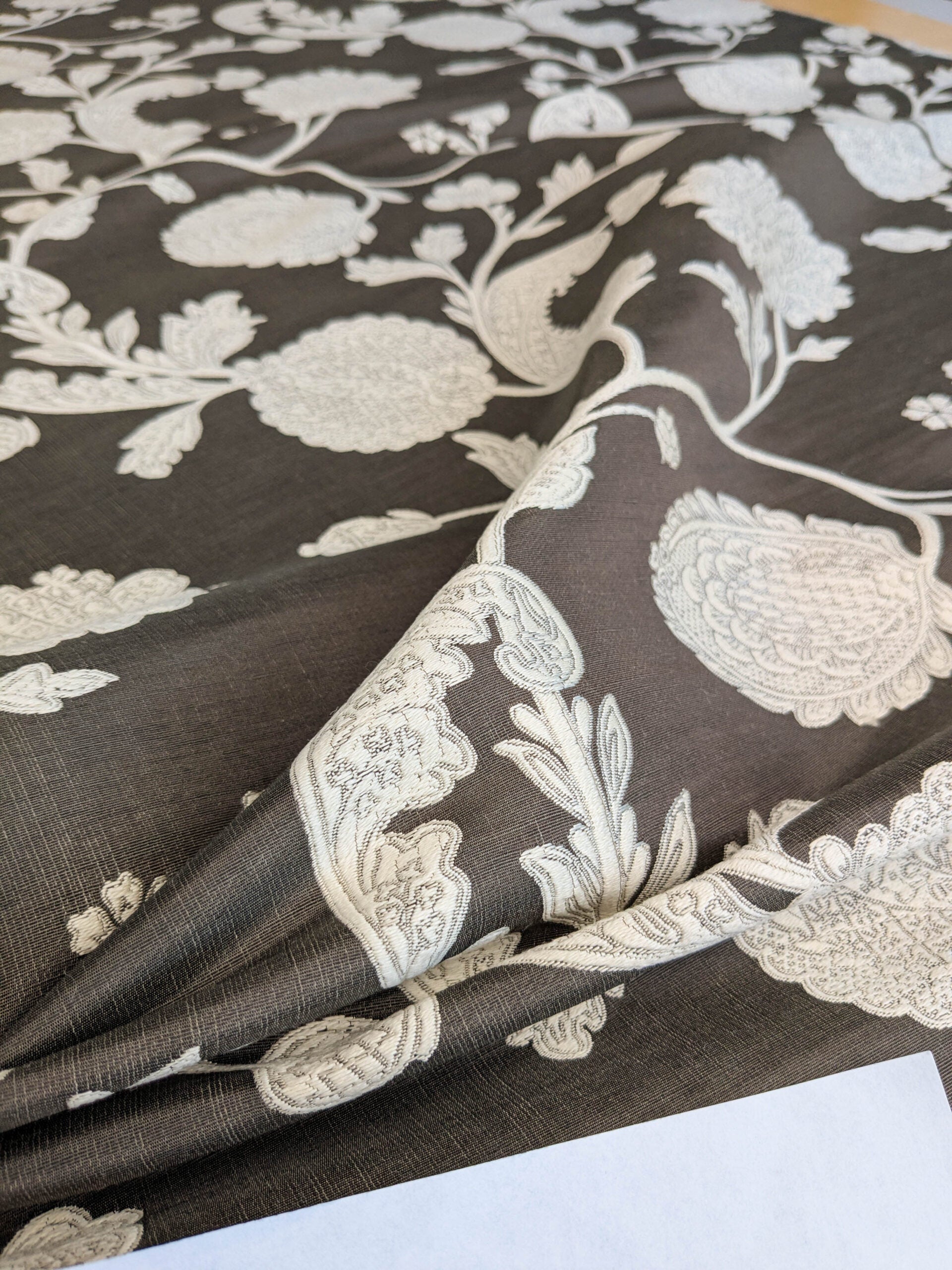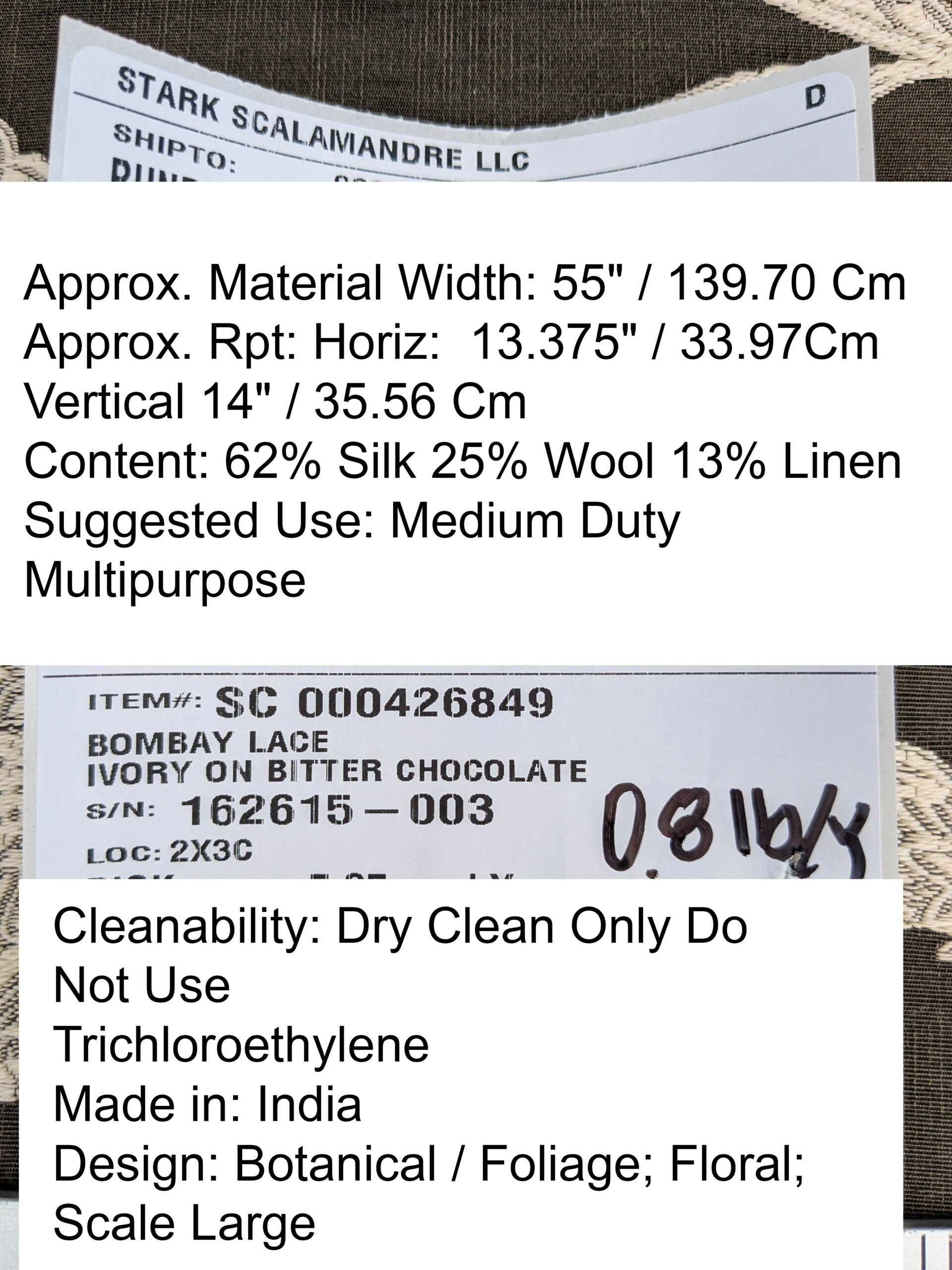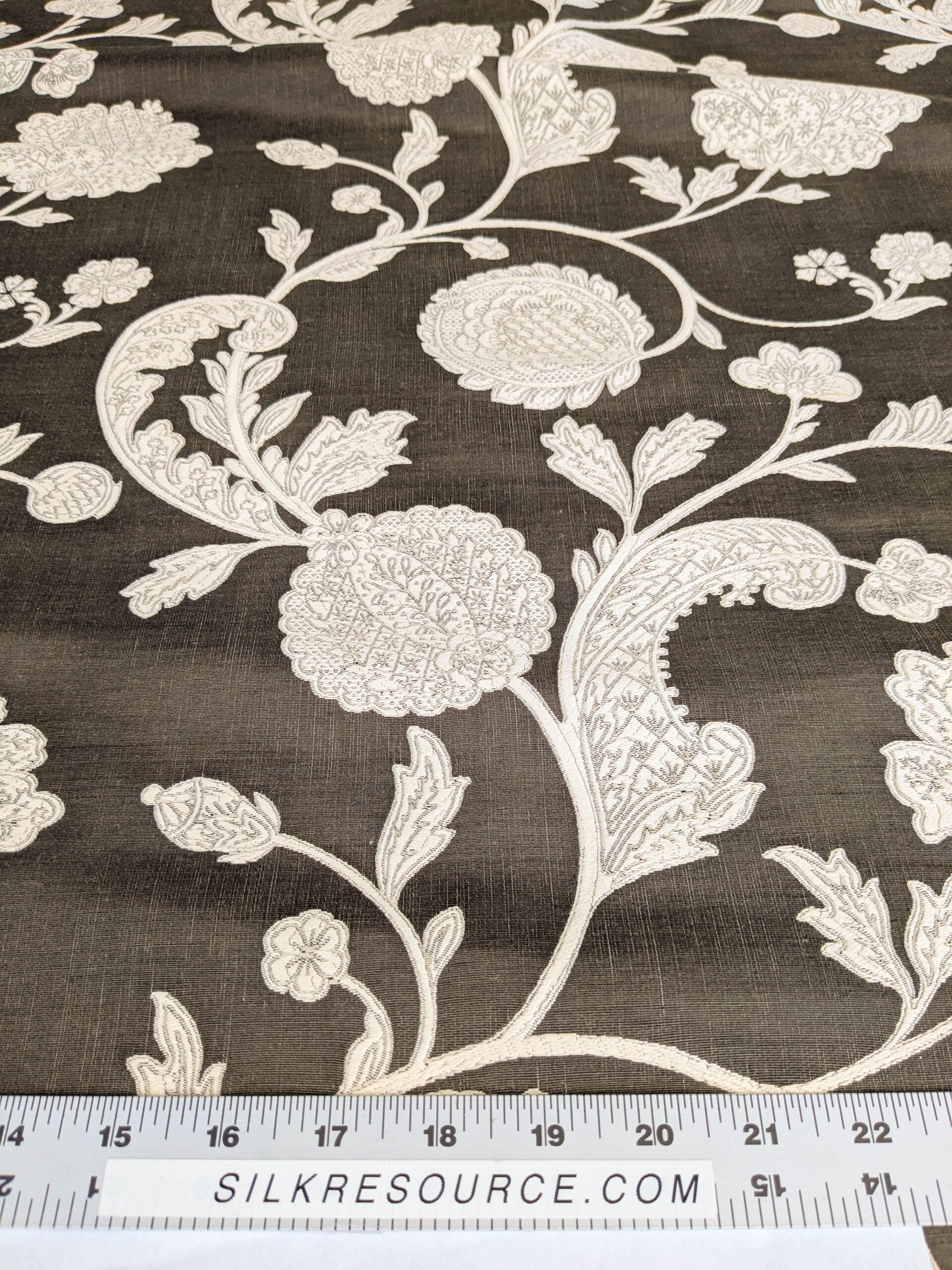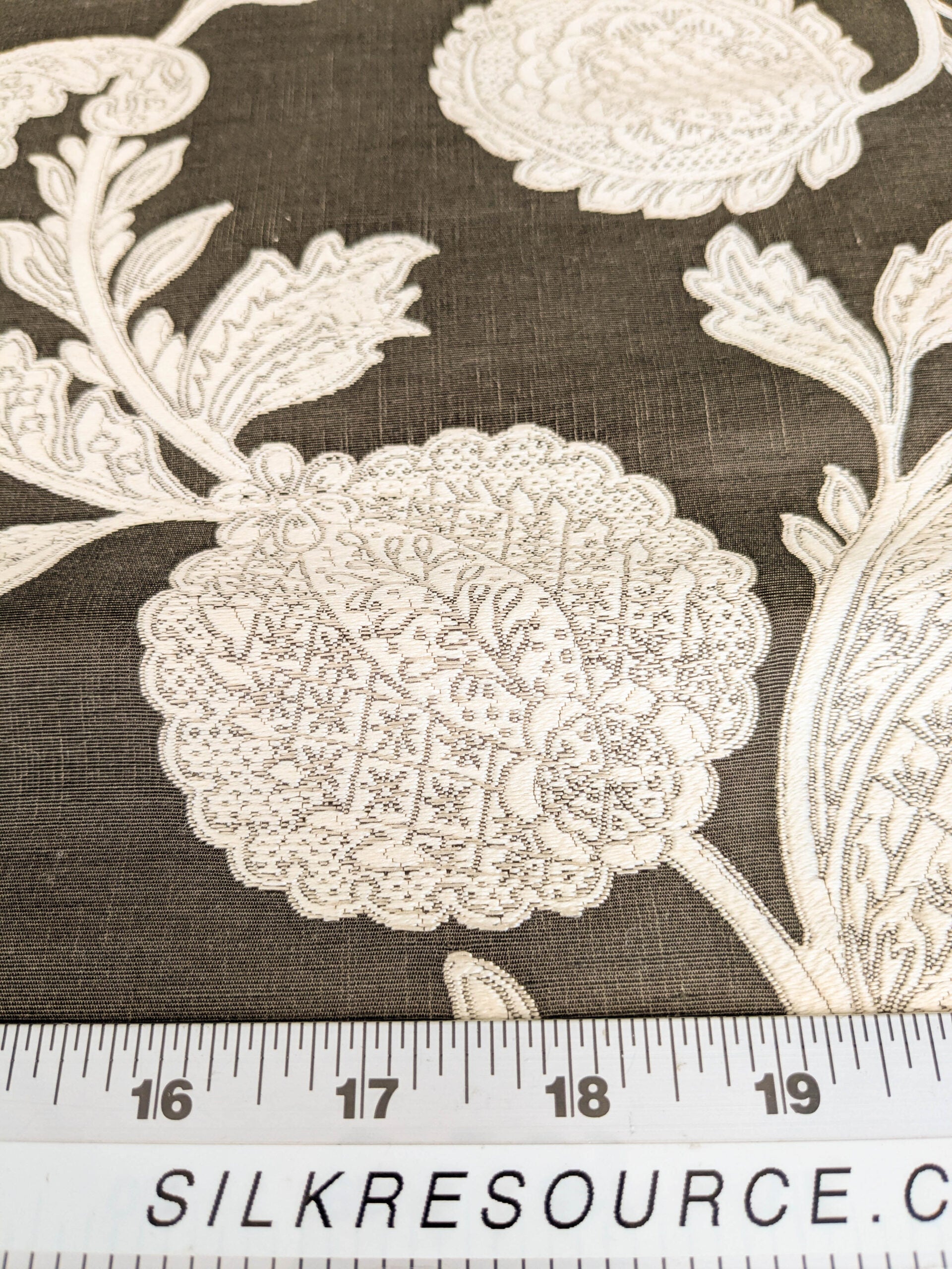 Scalamandre Bombay Lace Ivory on Bitter Chocolate Brown Silver White Botanical Foliage Large Pattern
