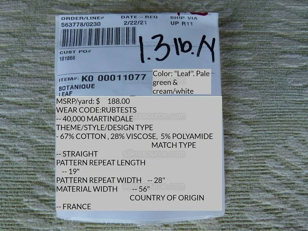 Scalamandre Botanique Fh Leaf Pale Green Fern Foliage Cotton MSRP USD 188/Y