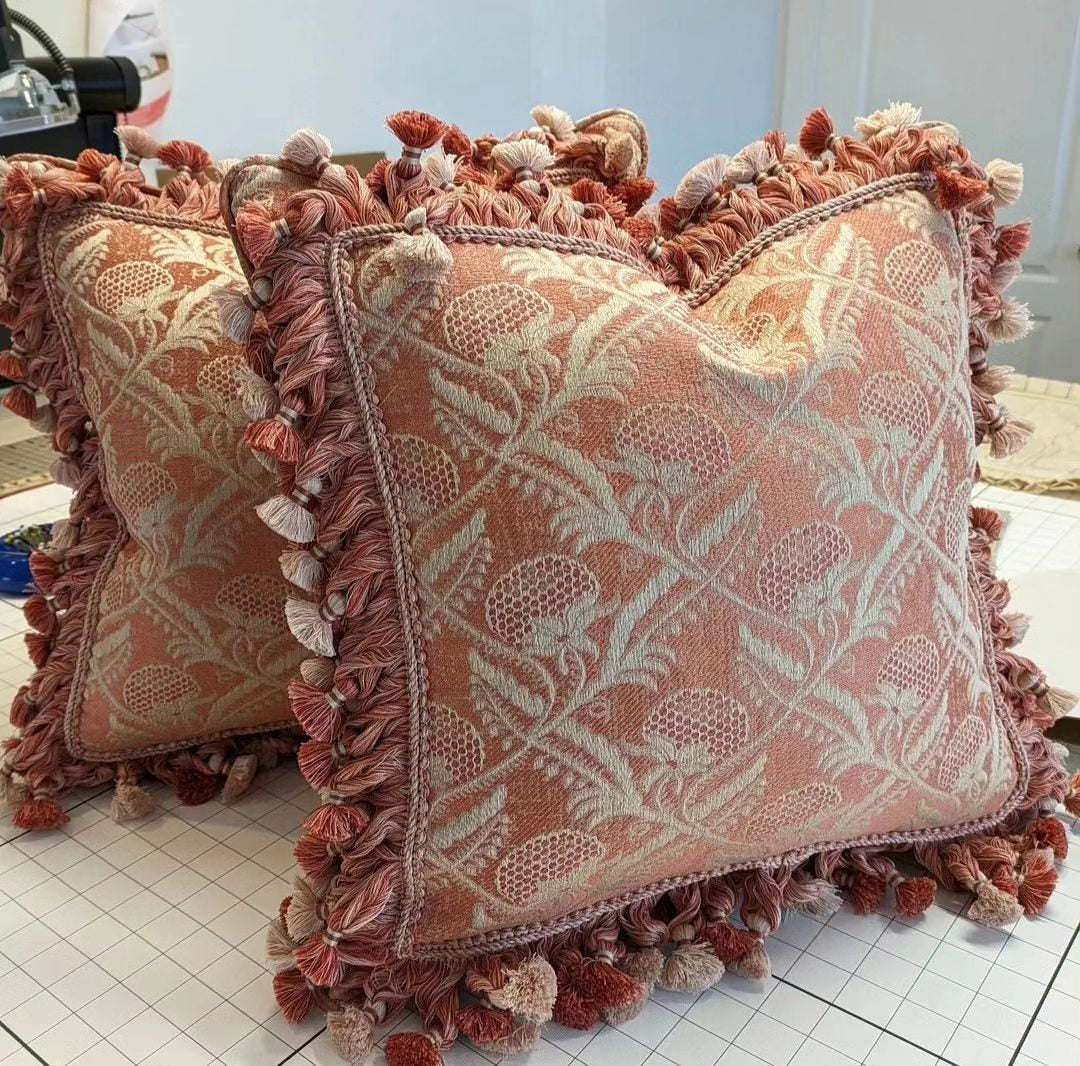 Boutonniere,a historical design from Italy, captures the rhythmic beauty of nature. Mini pomegranate arranged into the lattice of foliage and berries, its scale is highly versatile for drapery, large sofa, small ottoman, chair seats or pillows. The dynamic pattern is both lively and calming. Boutonniere is a flower or small bunch of flowers worn in a buttonhole.