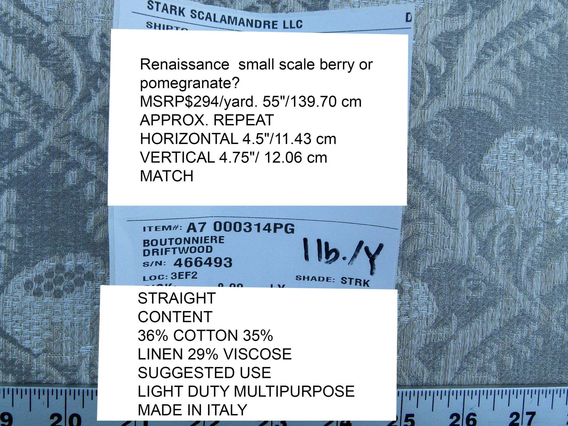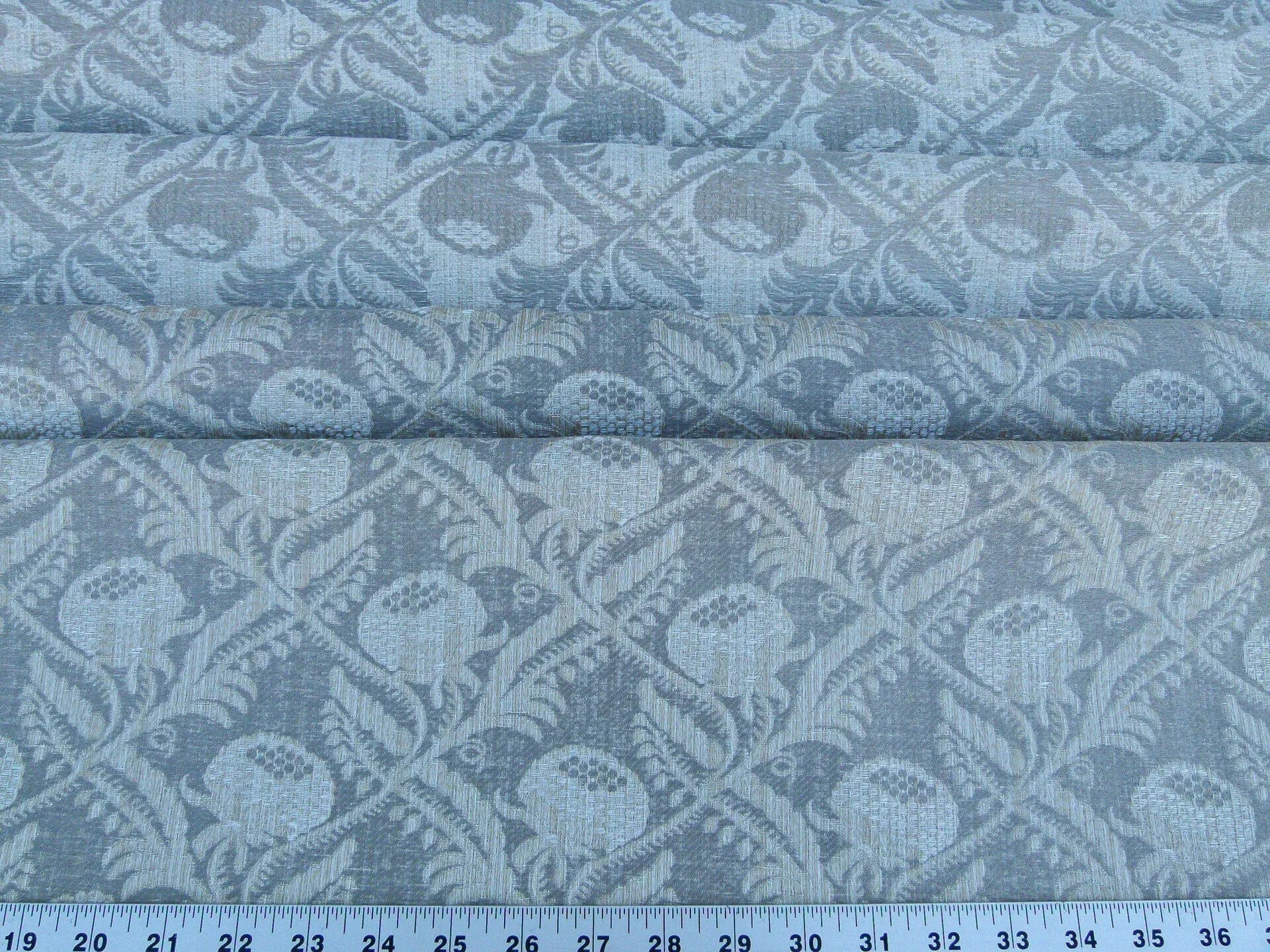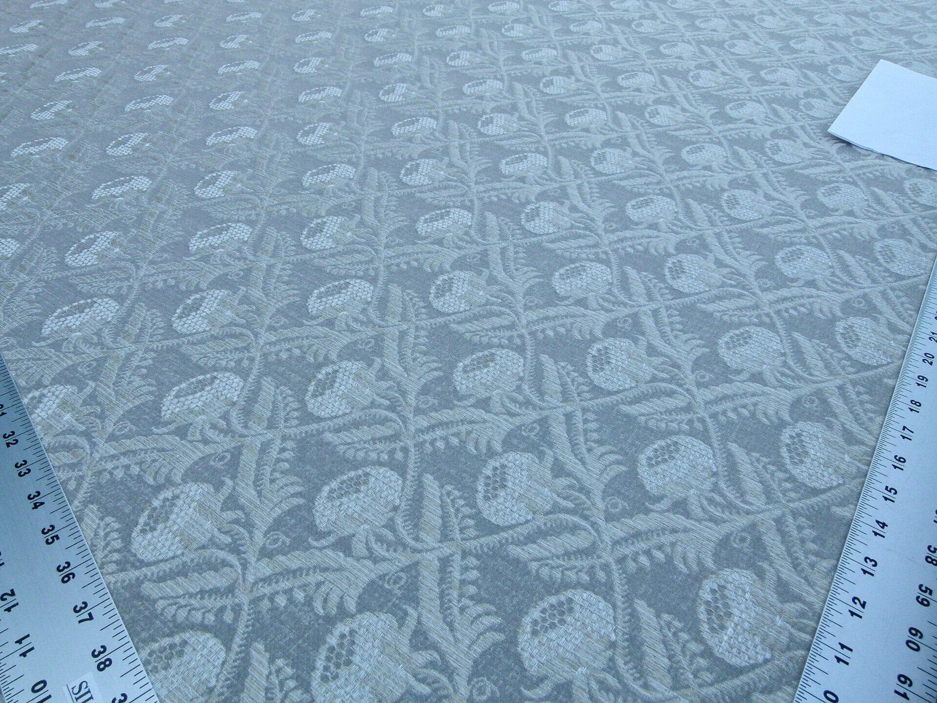 Scalamandre Boutonniere Driftwood Gray Blue Renaissance Small Scale Berry Pomegranate Jacquard Cotton Linen MSRP USD 402/y