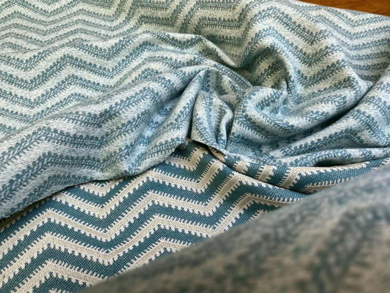 Scalamandre Brushed Chevron Turquoise Blue Green Cotton Jacquard Herringbone Reversible MSRP USD 188/Y