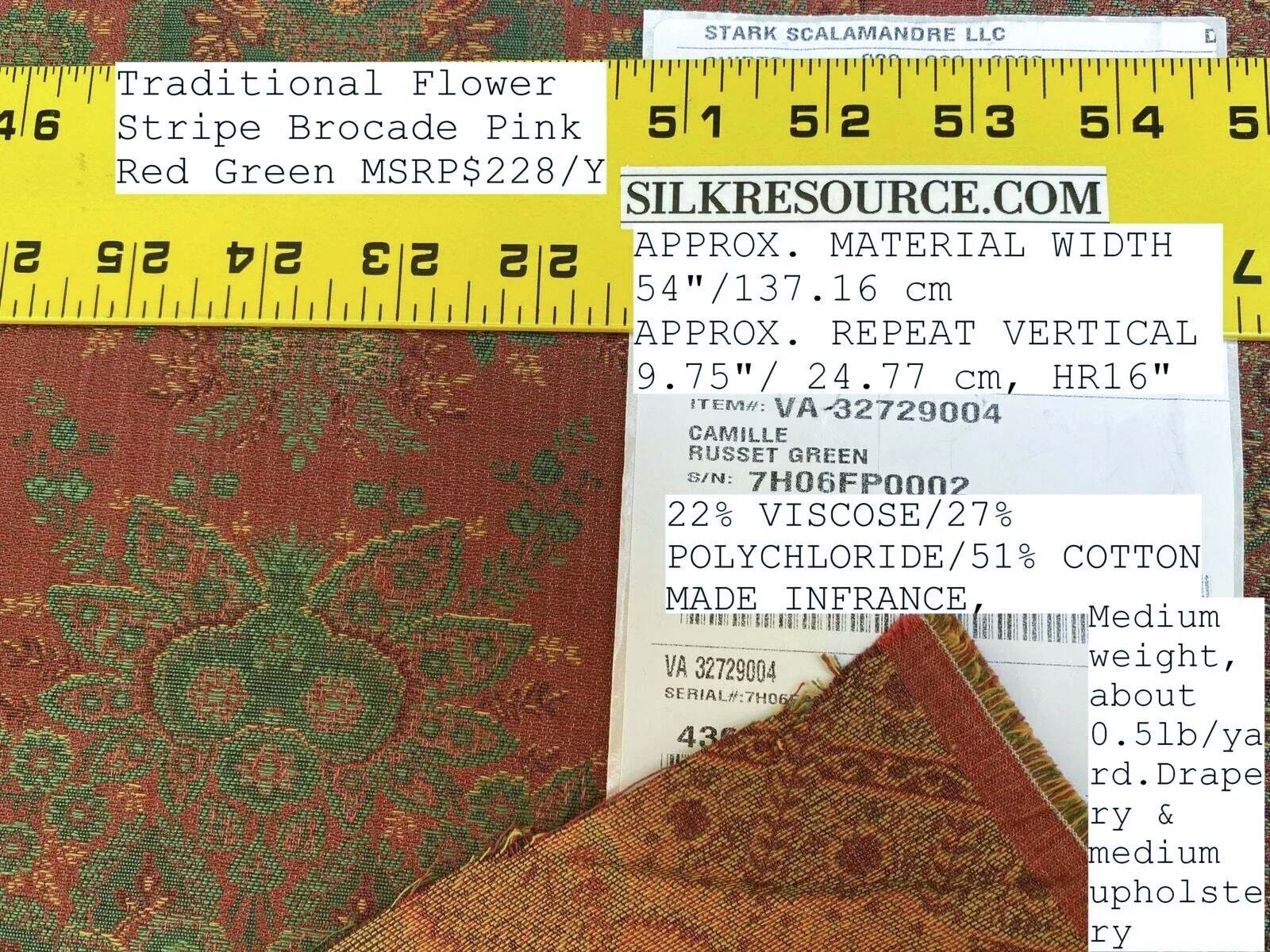 Scalamandre Camille Russet Green Traditional Flower Stripe Brocade Pink Red Green MSRP USD 228/Y