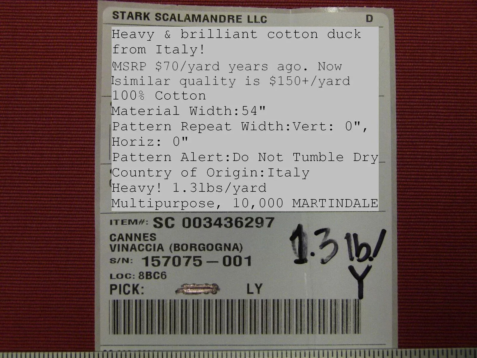 Cannes carries superb weight: 1.3lb/yard. It is more than twice the weight of good quality cotton canvas.