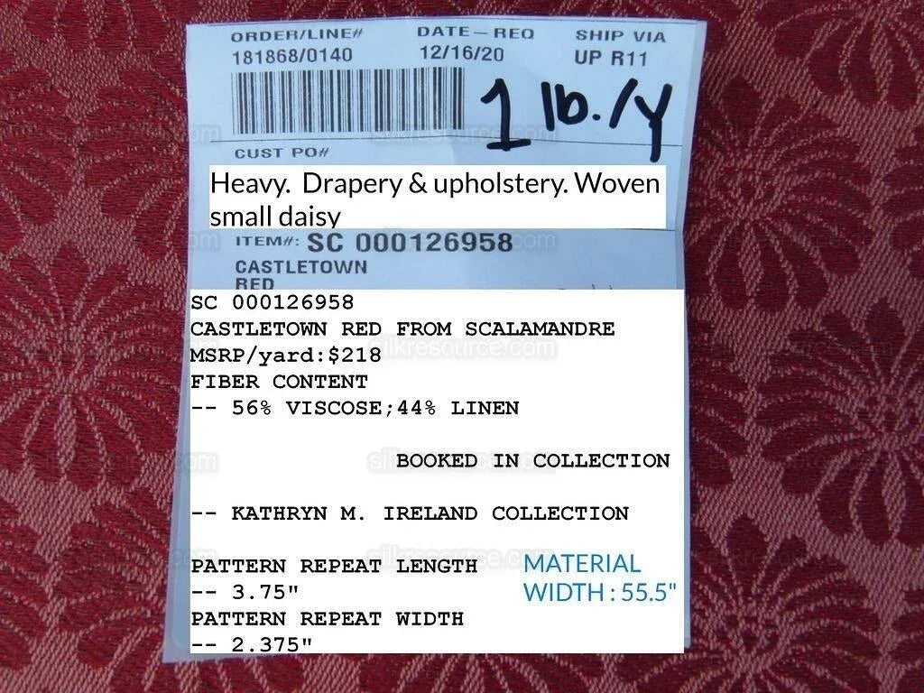 Scalamandre Castletown Red Pink Jacquard Small Scale Daisy Linen MSRP USD218/y