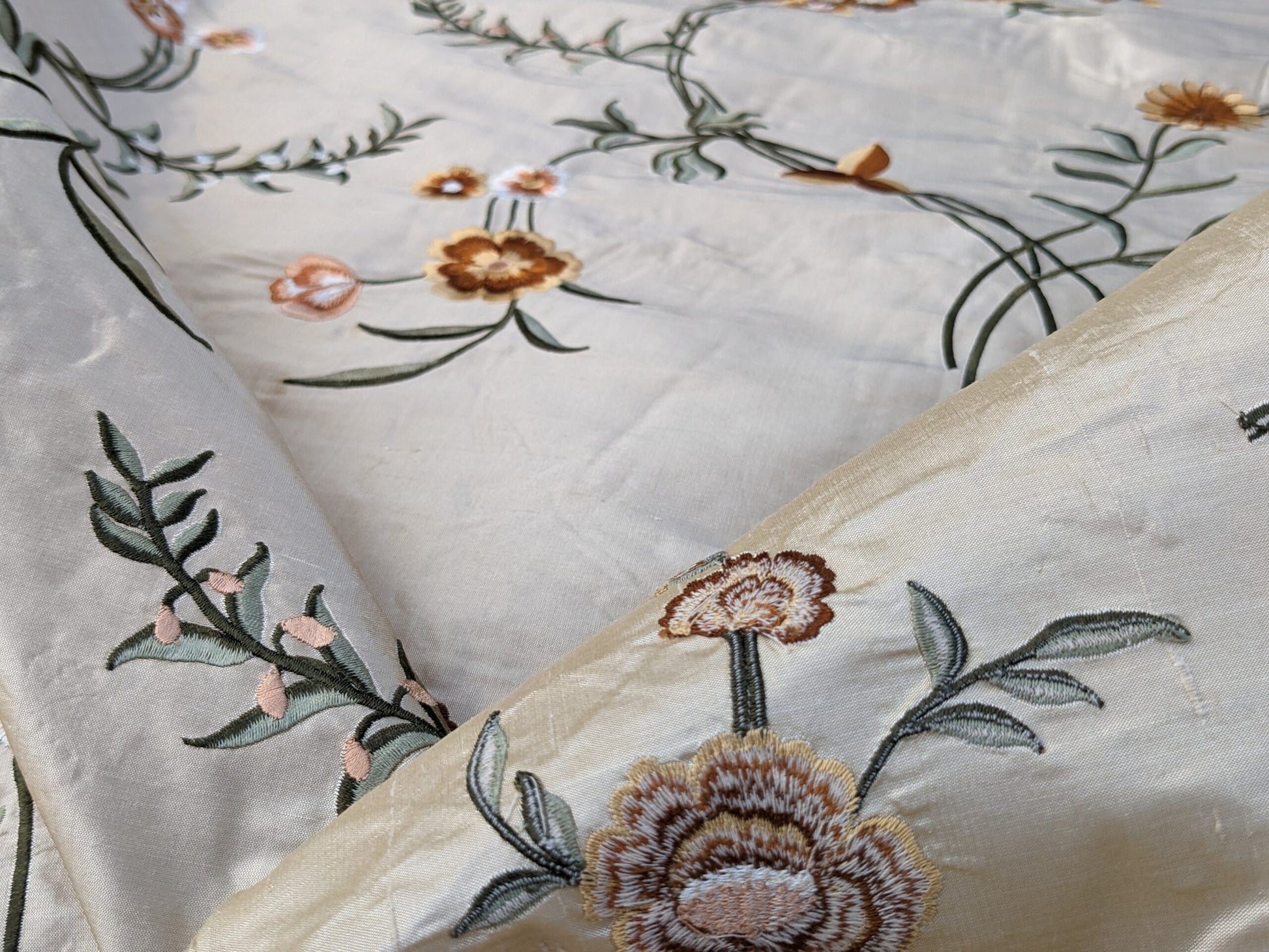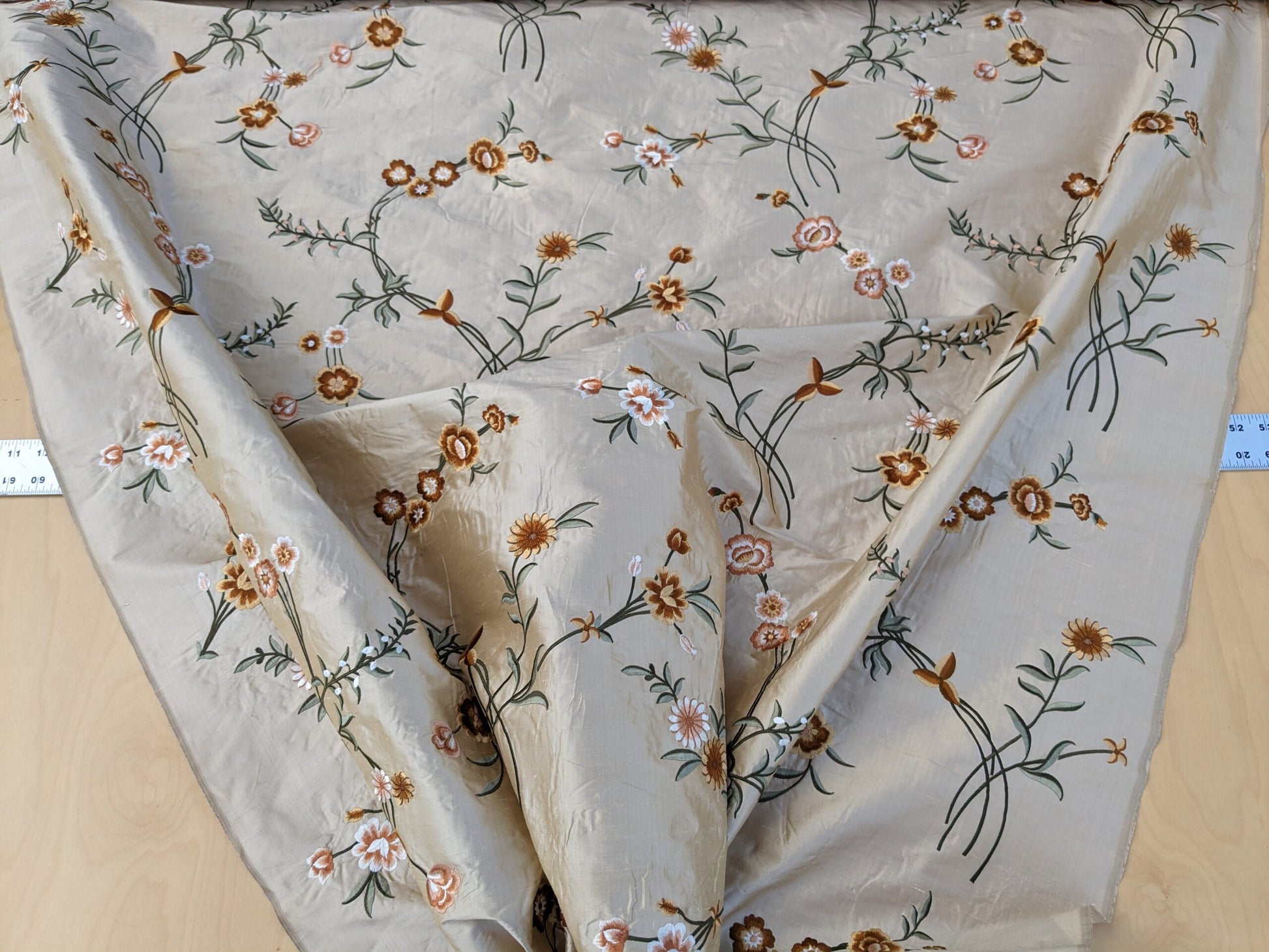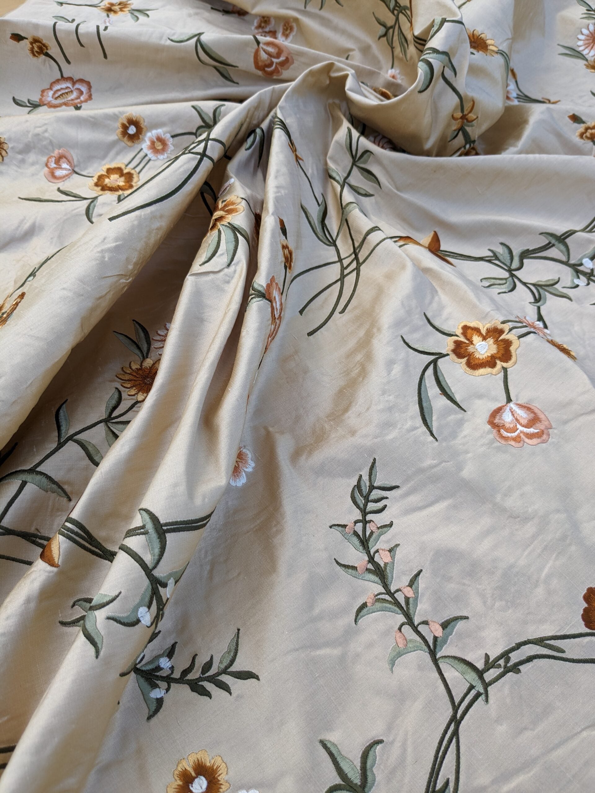 Scalamandre Chahna in Day Lily Orange Silk Embroidery Light Gold Orange daisy Rose Vine & Flower MSRP USD344/y