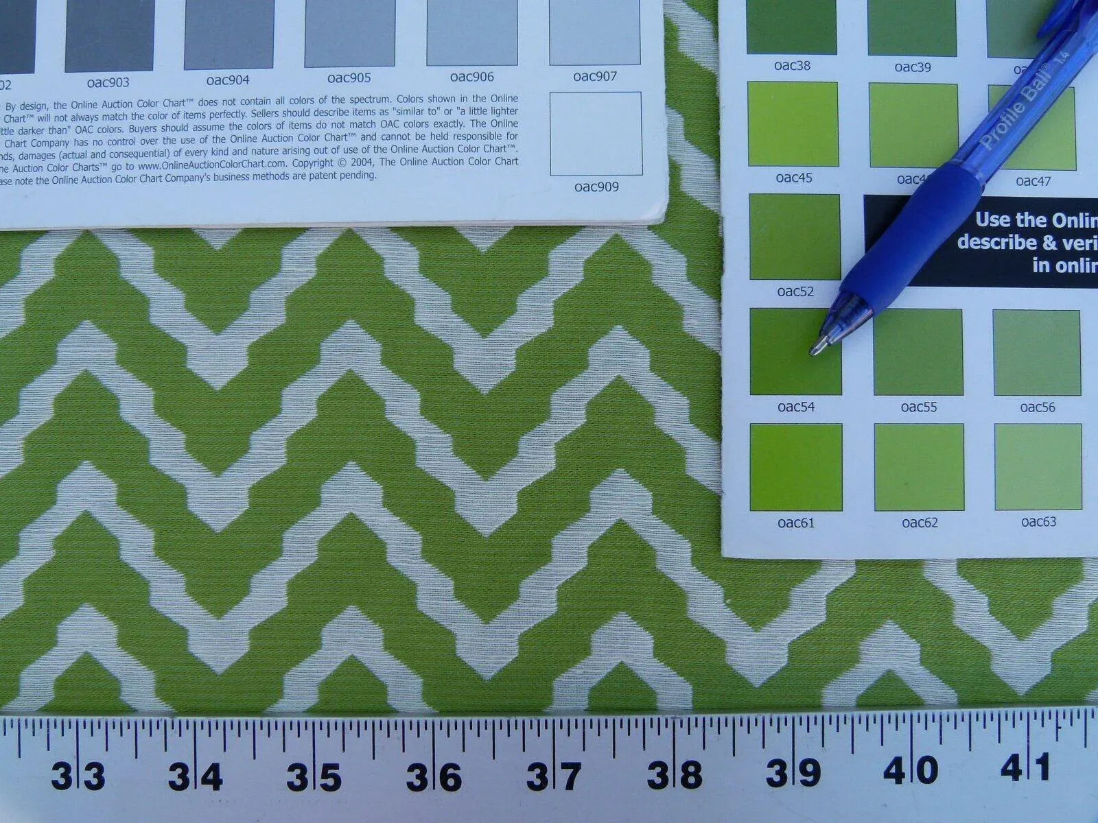 Gorgeous chevron or wave design. In pleasant and durable blend of cotton, linen and polyester.