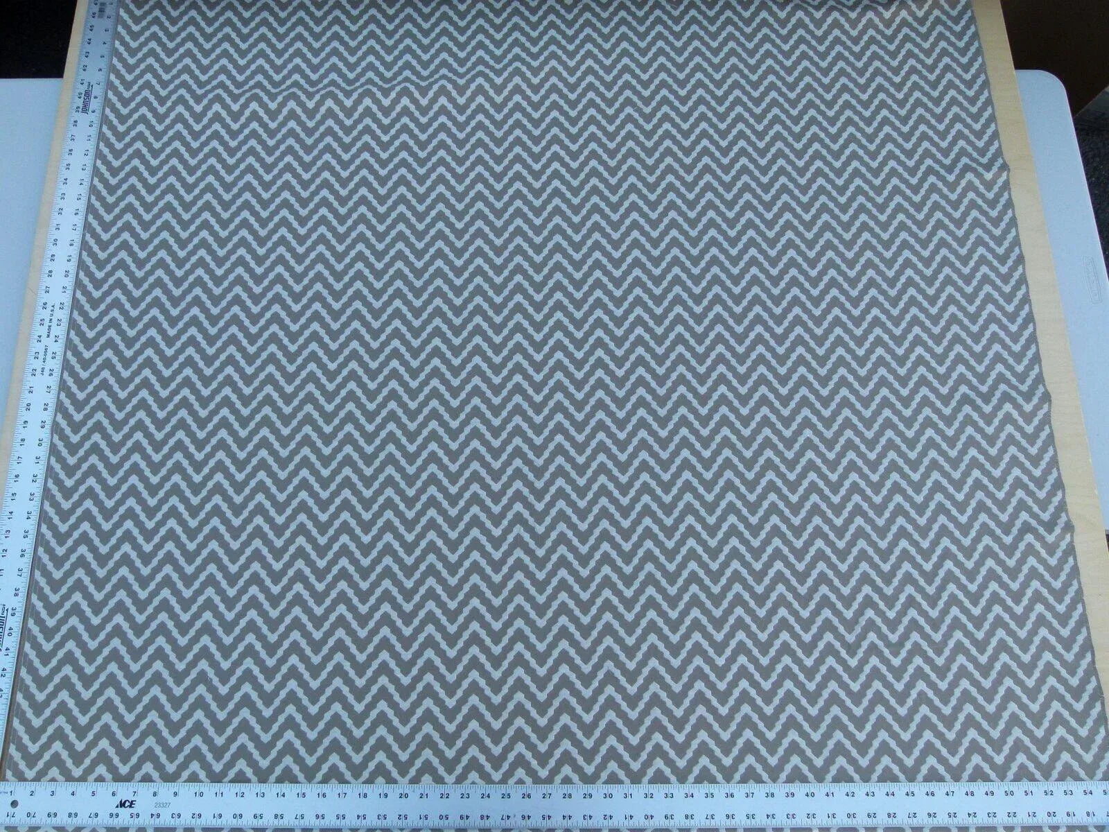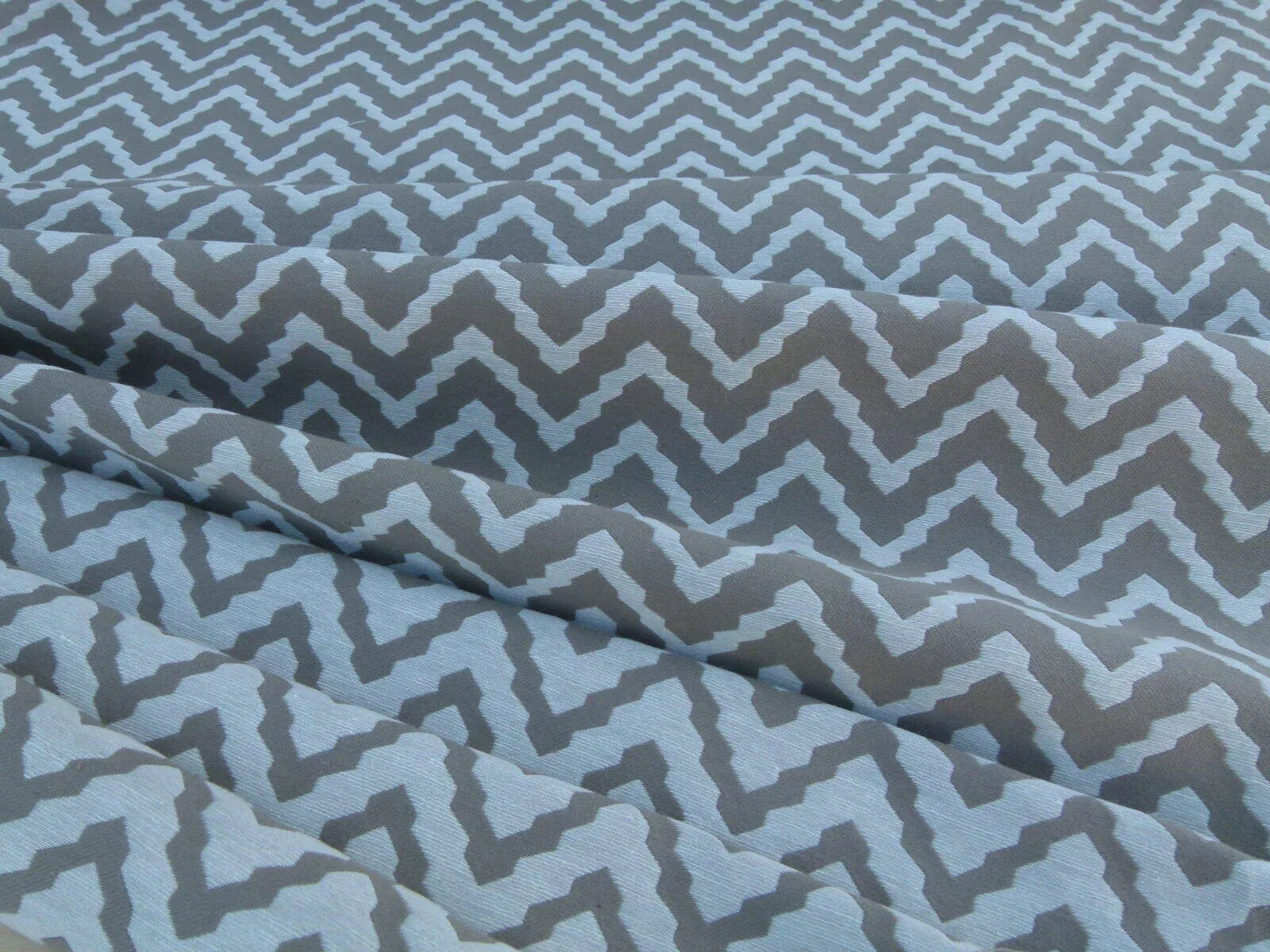 Gorgeous chevron or wave design. In pleasant and durable blend of cotton, linen and polyester.