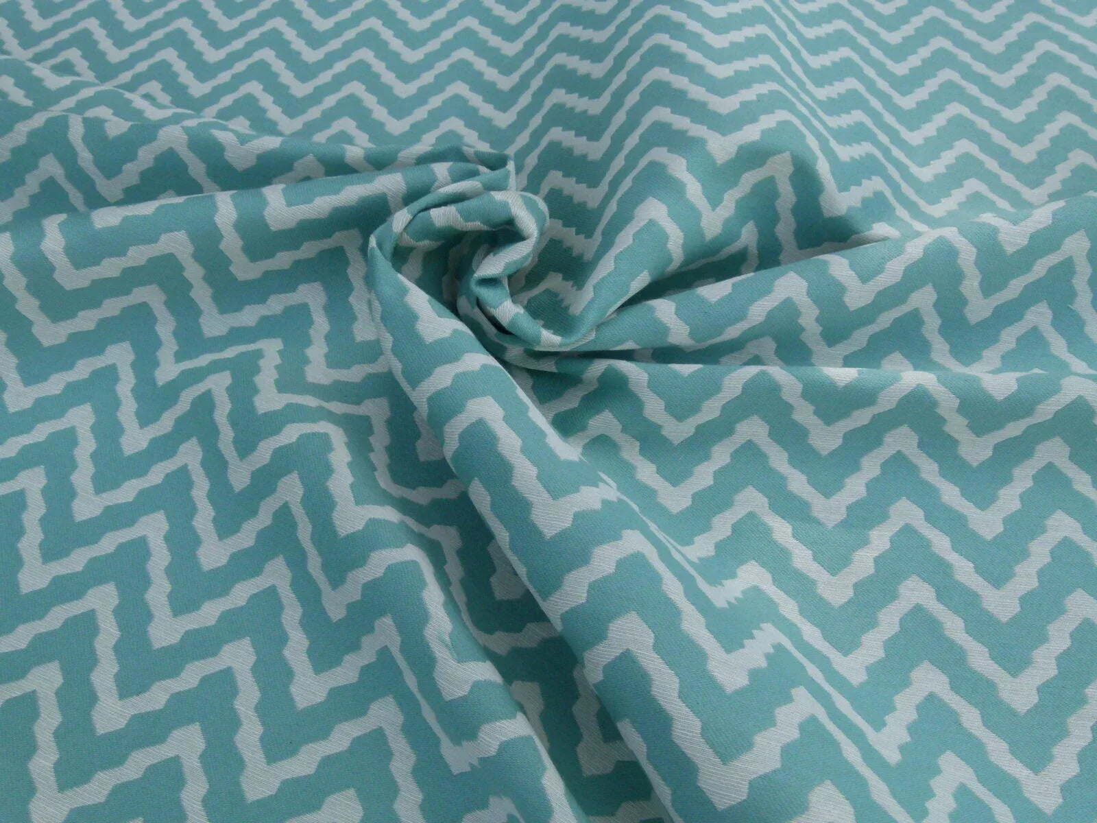 | Gorgeous chevron or wave design. In pleasant and durable blend of cotton, linen and polyester.
