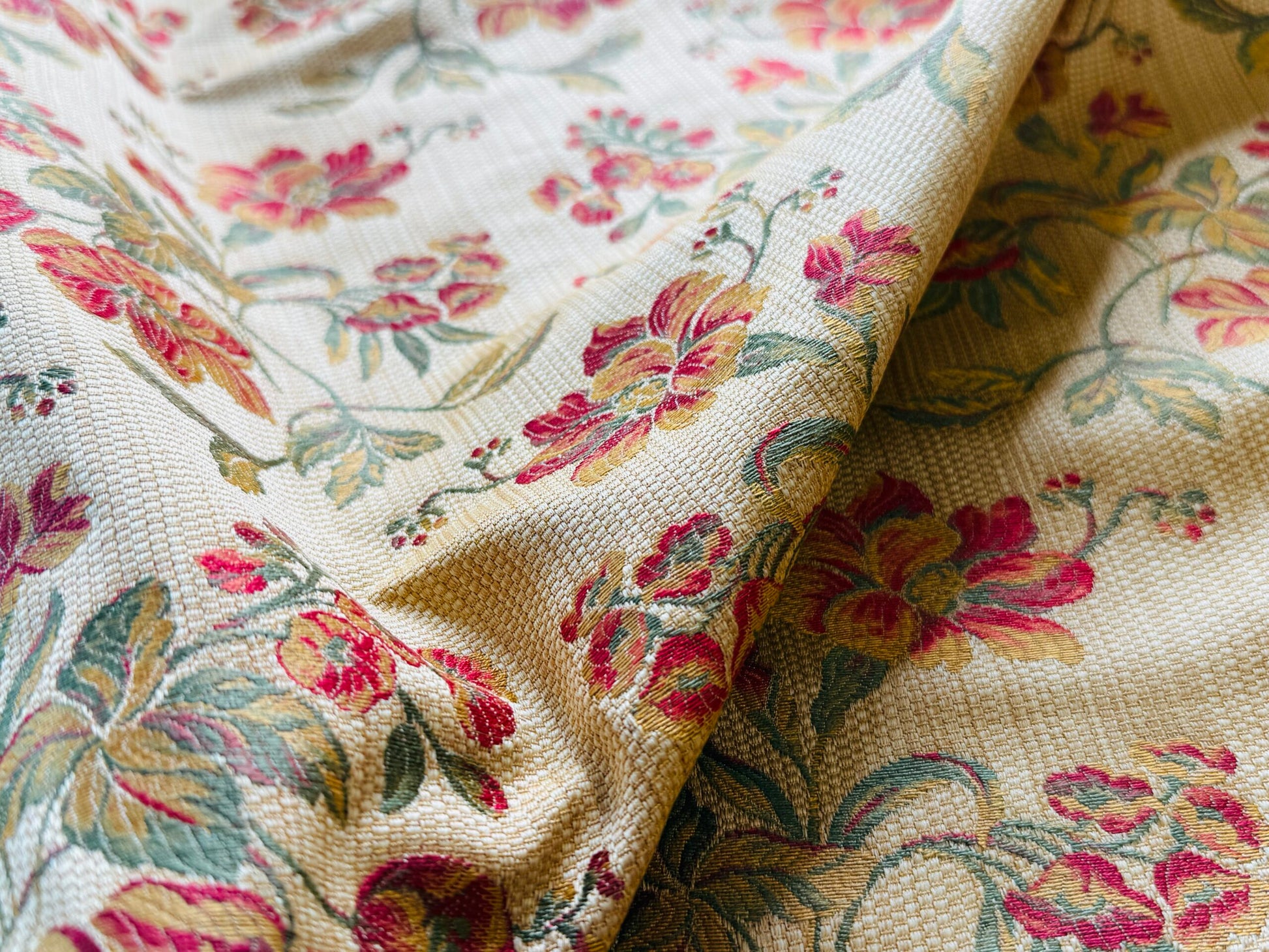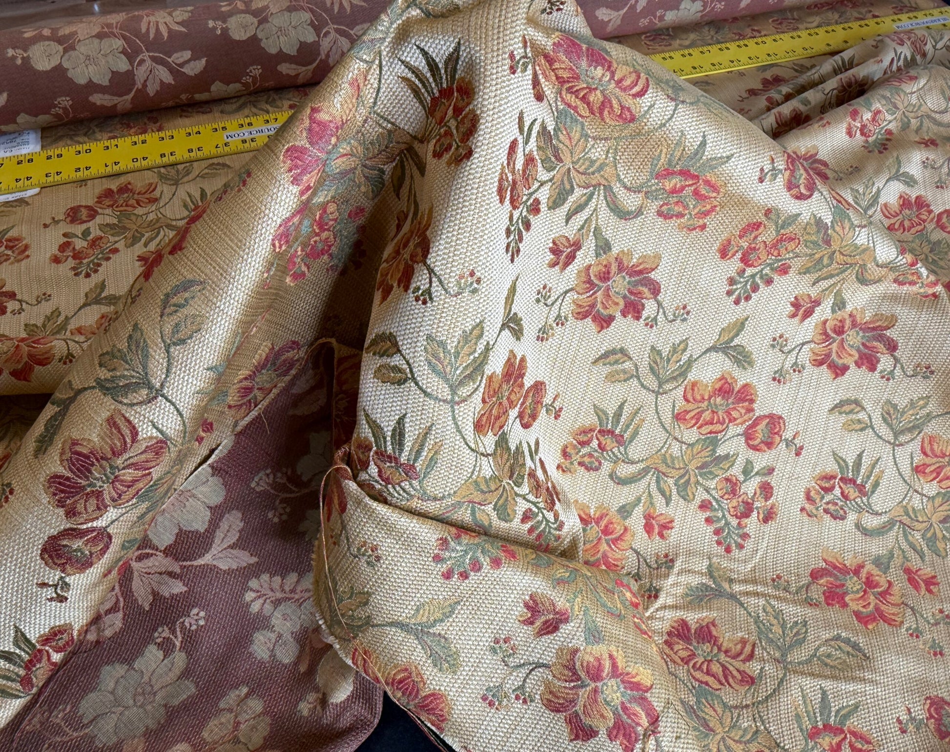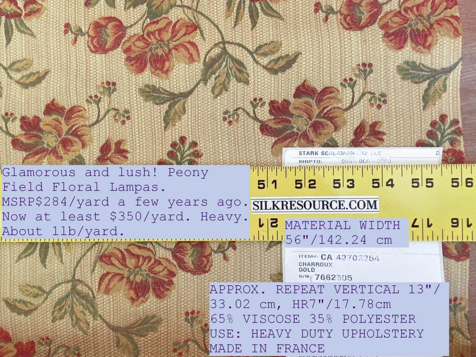 Scalamandre Charroux Gold Peony Field Red Floral Lampas Red France MSRP USD 284/Y